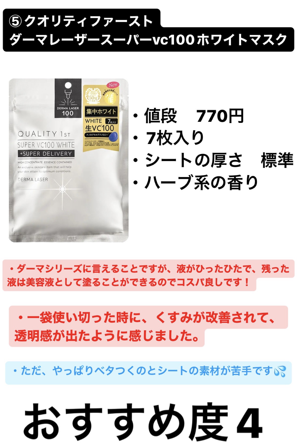 クオリティファースト ダーマレーザースーパーVC100マスク | 770円 |