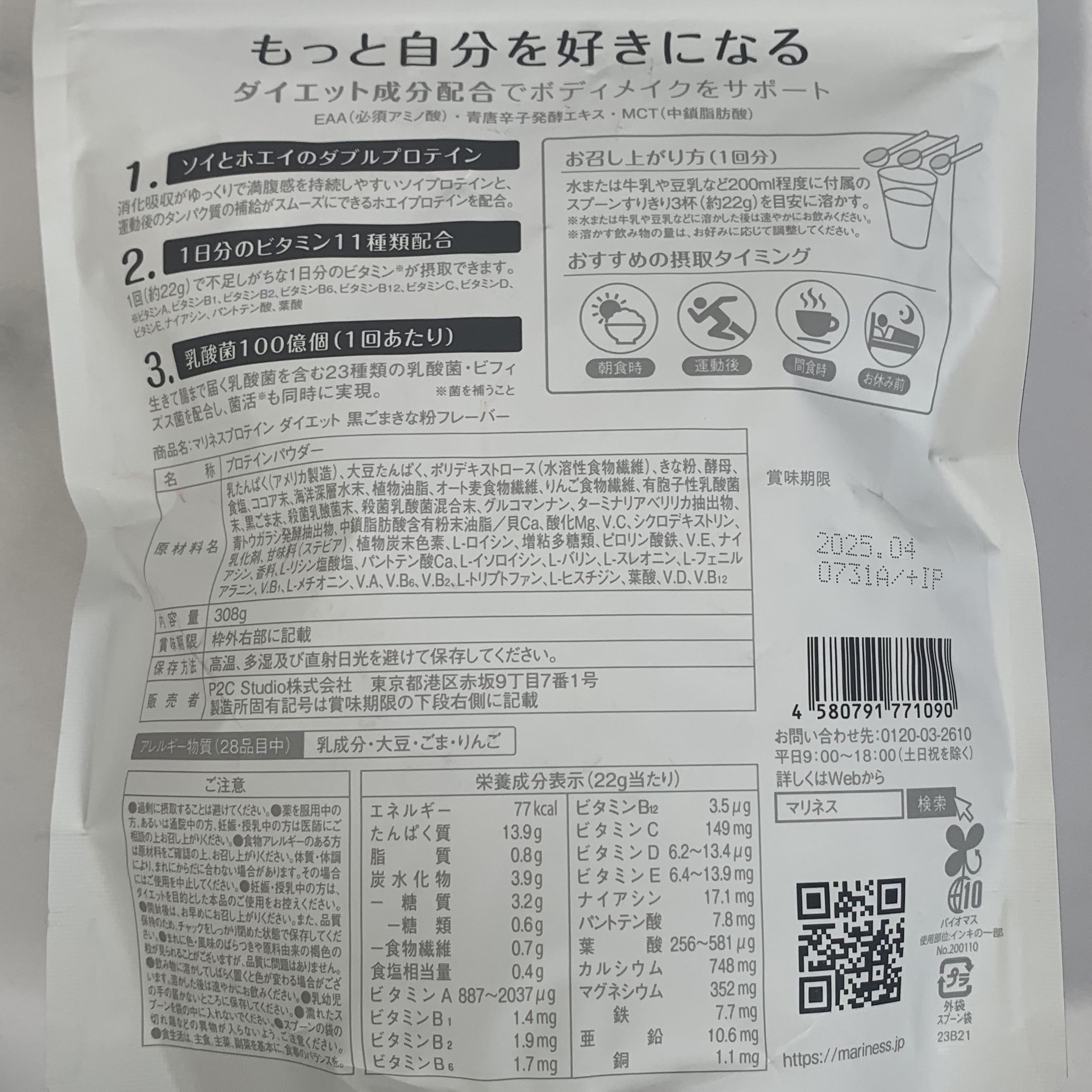商品詳細情報mariness プロテイン 黒ごまきな粉