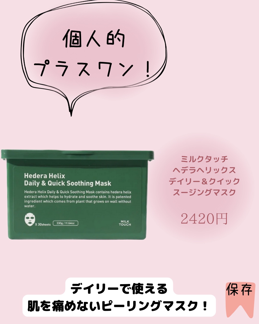 Milk Touch ヘデラヘリックス デイリー&クイック スージングマスク | 2,420円 |