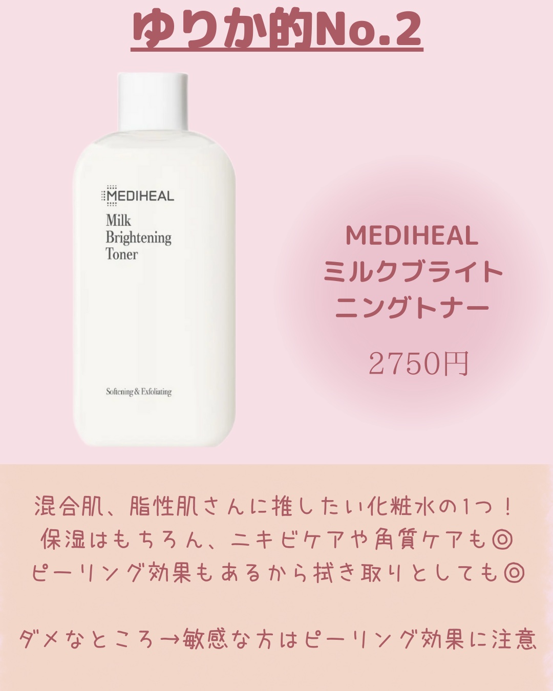 MEDIHEAL ミルクブライトニングトナー | 2,750円 |