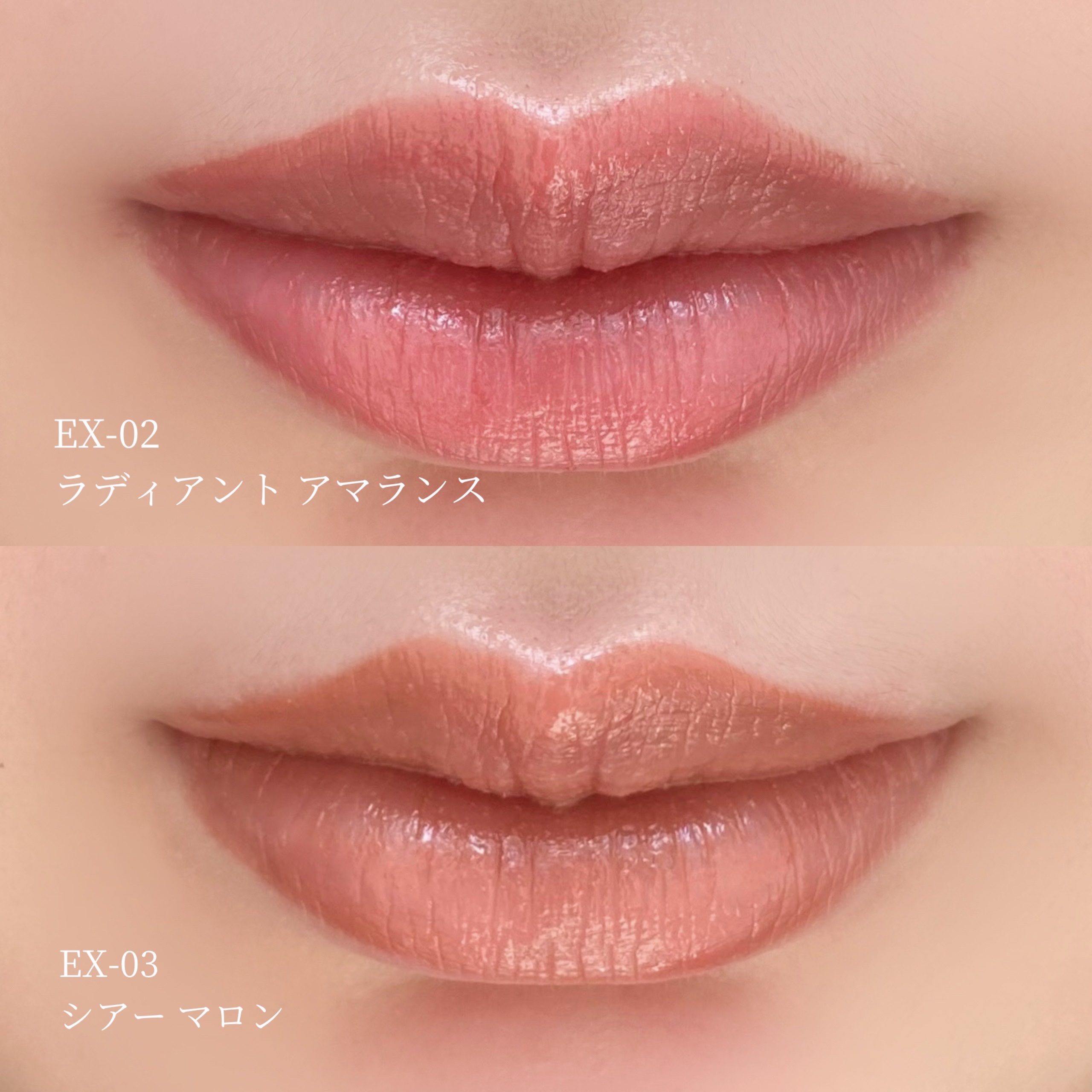 - <01 シアー セピア> テトライソステアリン酸ジペンタエリスリチル、ジカプリン酸ネオペンチルグリコール、トリメチルシロキシケイ酸、リンゴ酸ジイソステアリル、ヒドロキシステアリン酸エチルヘキシル、イソドデカン、オクチルドデカノール、マイクロクリスタリンワックス、セレシン、ラウロイルグルタミン酸ジ(オクチルドデシル/フィトステリル/ベヘニル)、ジステアルジモニウムヘクトライト、水添ポリイソブテン、炭酸プロピレン、トコフェロール、カニナバラ果実油、ヒアルロン酸Na、フェノキシエタノール、(+/-)(チタン/酸化チタン)焼結物、マイカ、ラウロイルアスパラギン酸Na、ラウロイルリシン、塩化亜鉛、酸化チタン、酸化鉄、水酸化Al、硫酸Ba、トリイソステアリン酸イソプロピルチタン、トリエトキシカプリリルシラン、黄4、黄5、青1、赤201、赤202 <02 ウォーム バタースコッチ> テトライソステアリン酸ジペンタエリスリチル、ジカプリン酸ネオペンチルグリコール、トリメチルシロキシケイ酸、リンゴ酸ジイソステアリル、ヒドロキシステアリン酸エチルヘキシル、イソドデカン、オクチルドデカノール、マイクロクリスタリンワックス、セレシン、ラウロイルグルタミン酸ジ(オクチルドデシル/フィトステリル/ベヘニル)、ジステアルジモニウムヘクトライト、水添ポリイソブテン、炭酸プロピレン、トコフェロール、カニナバラ果実油、ヒアルロン酸Na、フェノキシエタノール、(+/-)(チタン/酸化チタン)焼結物、マイカ、ラウロイルアスパラギン酸Na、ラウロイルリシン、塩化亜鉛、酸化チタン、酸化鉄、水酸化Al、硫酸Ba、トリイソステアリン酸イソプロピルチタン、トリエトキシカプリリルシラン、黄4、黄5、青1、赤201、赤202 <03 ボルドー ウェーブ> テトライソステアリン酸ジペンタエリスリチル、ジカプリン酸ネオペンチルグリコール、トリメチルシロキシケイ酸、リンゴ酸ジイソステアリル、ヒドロキシステアリン酸エチルヘキシル、イソドデカン、オクチルドデカノール、マイクロクリスタリンワックス、セレシン、ラウロイルグルタミン酸ジ(オクチルドデシル/フィトステリル/ベヘニル)、ジステアルジモニウムヘクトライト、水添ポリイソブテン、炭酸プロピレン、トコフェロール、カニナバラ果実油、ヒアルロン酸Na、フェノキシエタノール、(+/-)(チタン/酸化チタン)焼結物、マイカ、ラウロイルアスパラギン酸Na、ラウロイルリシン、塩化亜鉛、酸化チタン、酸化鉄、水酸化Al、硫酸Ba、トリイソステアリン酸イソプロピルチタン、トリエトキシカプリリルシラン、黄4、黄5、青1、赤201、赤202 <04 スパイスド サングリア> テトライソステアリン酸ジペンタエリスリチル、ジカプリン酸ネオペンチルグリコール、トリメチルシロキシケイ酸、リンゴ酸ジイソステアリル、ヒドロキシステアリン酸エチルヘキシル、イソドデカン、オクチルドデカノール、マイクロクリスタリンワックス、セレシン、ラウロイルグルタミン酸ジ(オクチルドデシル/フィトステリル/ベヘニル)、ジステアルジモニウムヘクトライト、水添ポリイソブテン、炭酸プロピレン、トコフェロール、カニナバラ果実油、ヒアルロン酸Na、フェノキシエタノール、(+/-)(チタン/酸化チタン)焼結物、マイカ、ラウロイルアスパラギン酸Na、ラウロイルリシン、塩化亜鉛、酸化チタン、酸化鉄、水酸化Al、硫酸Ba、トリイソステアリン酸イソプロピルチタン、トリエトキシカプリリルシラン、黄4、黄5、青1、赤201、赤202 <05 サキュレント ストロベリー> テトライソステアリン酸ジペンタエリスリチル、ジカプリン酸ネオペンチルグリコール、トリメチルシロキシケイ酸、リンゴ酸ジイソステアリル、ヒドロキシステアリン酸エチルヘキシル、イソドデカン、オクチルドデカノール、マイクロクリスタリンワックス、セレシン、ラウロイルグルタミン酸ジ(オクチルドデシル/フィトステリル/ベヘニル)、ジステアルジモニウムヘクトライト、水添ポリイソブテン、炭酸プロピレン、トコフェロール、カニナバラ果実油、ヒアルロン酸Na、フェノキシエタノール、(+/-)(チタン/酸化チタン)焼結物、マイカ、ラウロイルアスパラギン酸Na、ラウロイルリシン、塩化亜鉛、酸化チタン、酸化鉄、水酸化Al、硫酸Ba、トリイソステアリン酸イソプロピルチタン、トリエトキシカプリリルシラン、黄4、黄5、青1、赤201、赤202 <06 アラモアナ モーブ> テトライソステアリン酸ジペンタエリスリチル、ジカプリン酸ネオペンチルグリコール、トリメチルシロキシケイ酸、リンゴ酸ジイソステアリル、ヒドロキシステアリン酸エチルヘキシル、イソドデカン、オクチルドデカノール、マイクロクリスタリンワックス、セレシン、ラウロイルグルタミン酸ジ(オクチルドデシル/フィトステリル/ベヘニル)、ジステアルジモニウムヘクトライト、水添ポリイソブテン、炭酸プロピレン、トコフェロール、カニナバラ果実油、ヒアルロン酸Na、フェノキシエタノール、(+/-)(チタン/酸化チ