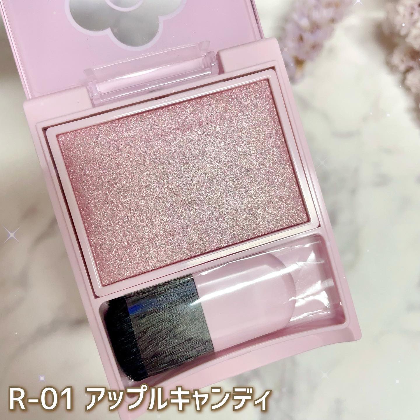 \かわいすぎて事件🤯💘⚡️濡れツヤハイライト/ 上品でキラキラのツヤが美しすぎると発売前から話題でしたね🙌 エナメル+キルティング加工のケースはツルツルぷにぷに♬ 薄型なので持ち運びにも便利!かわいいので無駄に持ち歩こう🙋♀️(?) 細かなピンクパールが温かみのあるツヤを演出してくれます💗 とてもしっとりしたパウダーで粉感がなく、繊細な輝きが長続きします👏 大粒の偏光ラメがギラギラ🤩🥳祭りじゃ〜!といった感じ笑 ホワイトカラーで輝きが目立つので濡れたようなツヤ感が出ます✨ マスクメイクでも頬骨より少し上のCゾーンに入れれば隠れずツヤ感が綺麗に映えます🥰 ラメが大粒で強いのでアイメイクの仕上げに入れても💮 結果万能なのとちょっと奇抜なの♥️ 両方文句なしにかわいかったので満足です🧚♀️笑