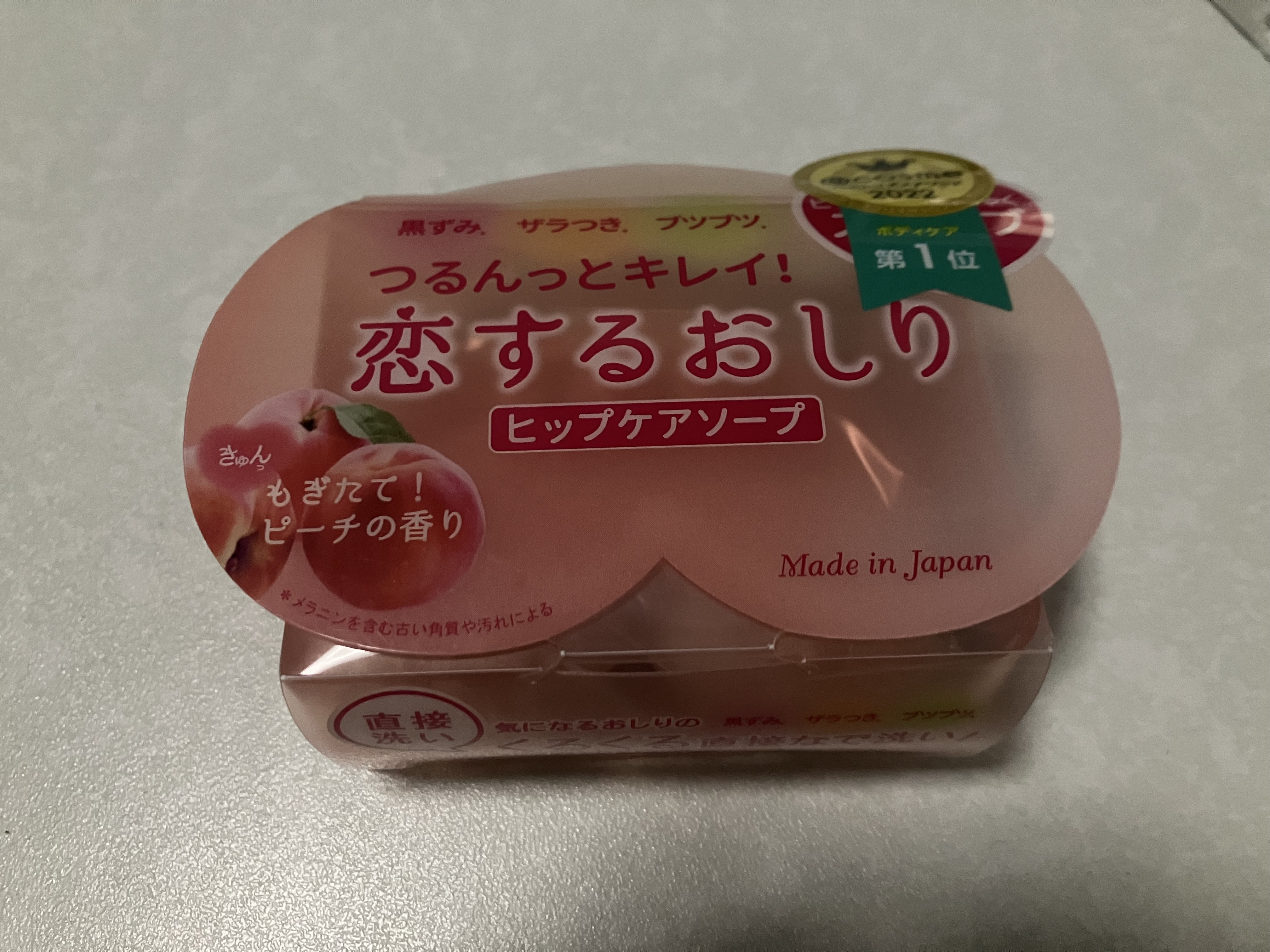 - 恋するおしり ヒップケアソープ おしりの黒ずみ・ザラつき・ブツブツにくるくる直接洗いの簡単ケア! (1)余分な古い角質を落とす:角質ケア スクラブ※1&ピーリング成分※2配合 【モモ核、マンナン※1 グルコノバクター/ハチミツ発酵液、 リンゴ酸・乳酸・クエン酸※2】 (2)必要なうるおいを守る:保湿ケア 6種※3の美容保湿エッセンスを配合 【モモ葉エキス、モモ種子エキス、ビワ葉エキス、キウイエキス、 アーチチョーク葉エキス、アロエベラ液汁※3】 ◎「きゅんっ」とする もぎたて!ピーチの香り
