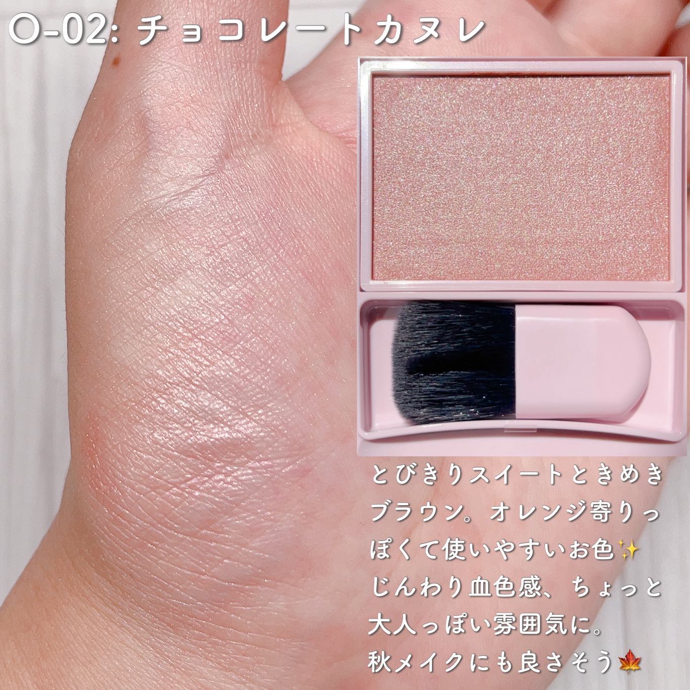 大人肌にありがちなチークへの苦手意識さえ払拭させるような、救世主的アイテム✨ ミネラル由来の透明感あるシアーな発色で、自然に色づいたような血色感と、にじみ出るようなツヤを演出してくれます。 ほのかな血色感を叶えるチークとしてはもちろん、透明感や輝きを演出するハイライターとして、こめかみから頬の高いところにかけてのせるのがとてもヘルシーで好きです!