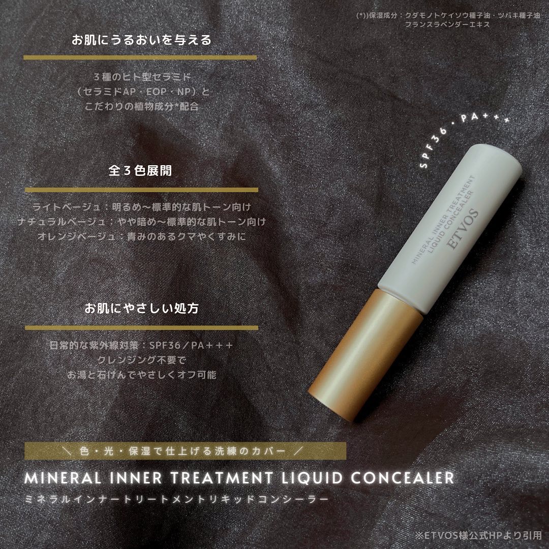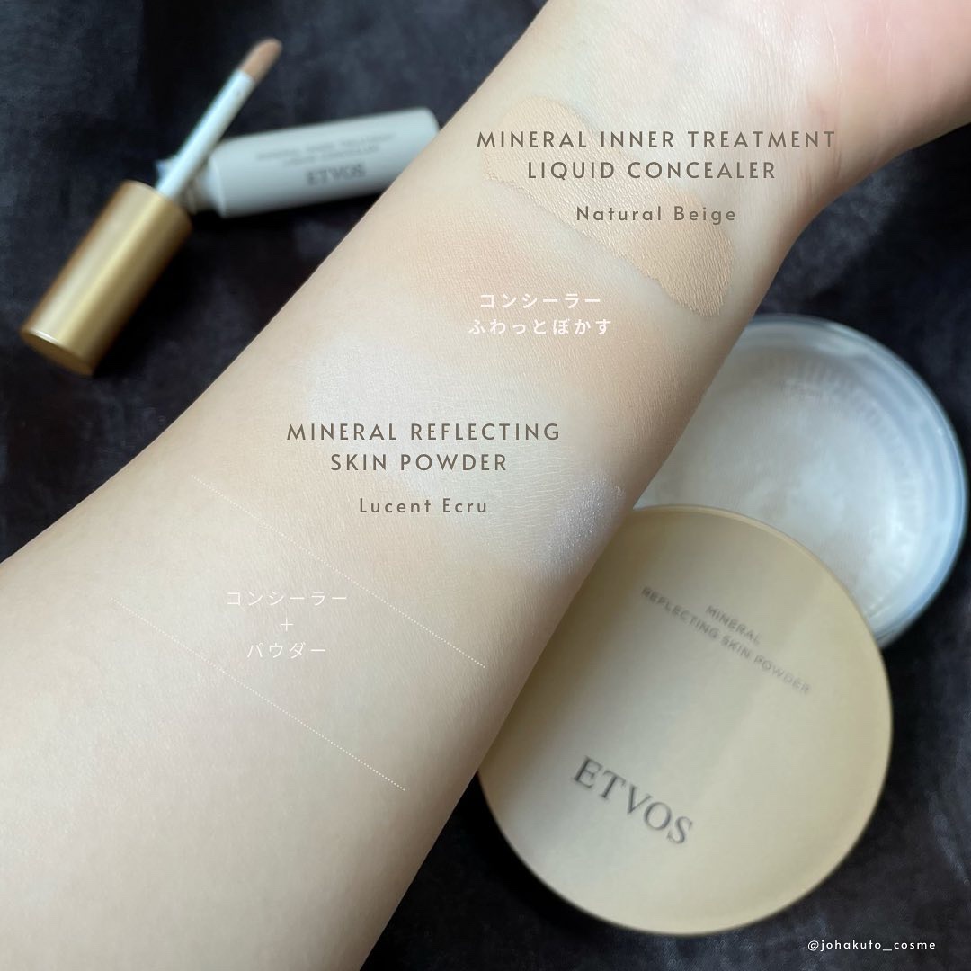 #エトヴォスミネラルインナートリートメントリキッドコンシーラーナチュラルベージュ【光でカモフラージュ💡】美容液コンシーラーというだけあってうるおうので乾燥による小皺をカバーしてくれる色はシミとクマどっちにも使いたかったのでナチュラルベージュに...