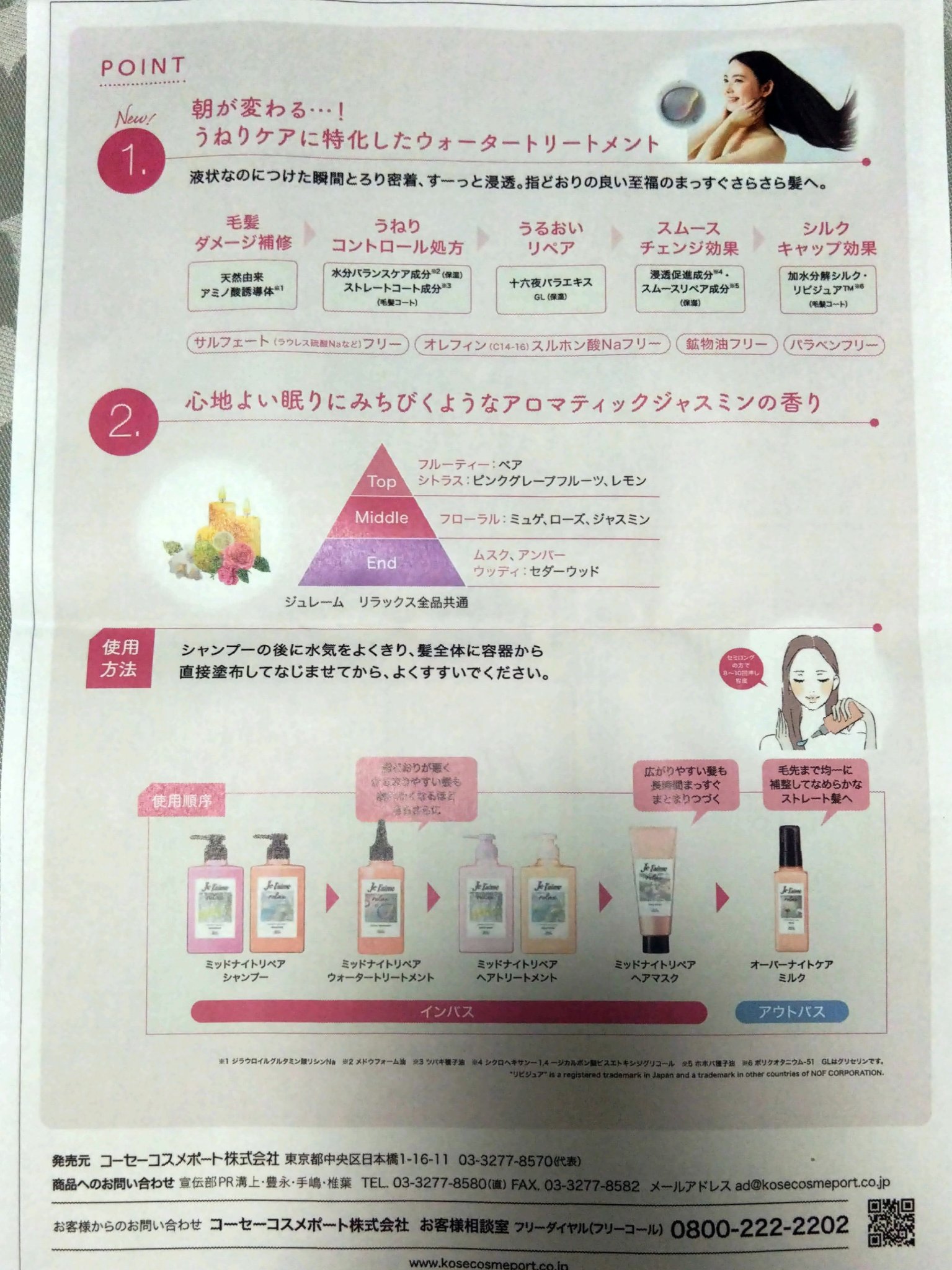 - しみ込む しみ込む うねり髪の夜美容 朝が変わる…!さらさらストレート髪へみちびくウォータートリートメント ●うねりケアに特化したウォータートリートメント 液状なのにつけた瞬間とろり密着、すーっと浸透。指どおりの良い至福のまっすぐさらさら髪へ ●心地よい眠りにみちびくような アロマティックジャスミンの香り