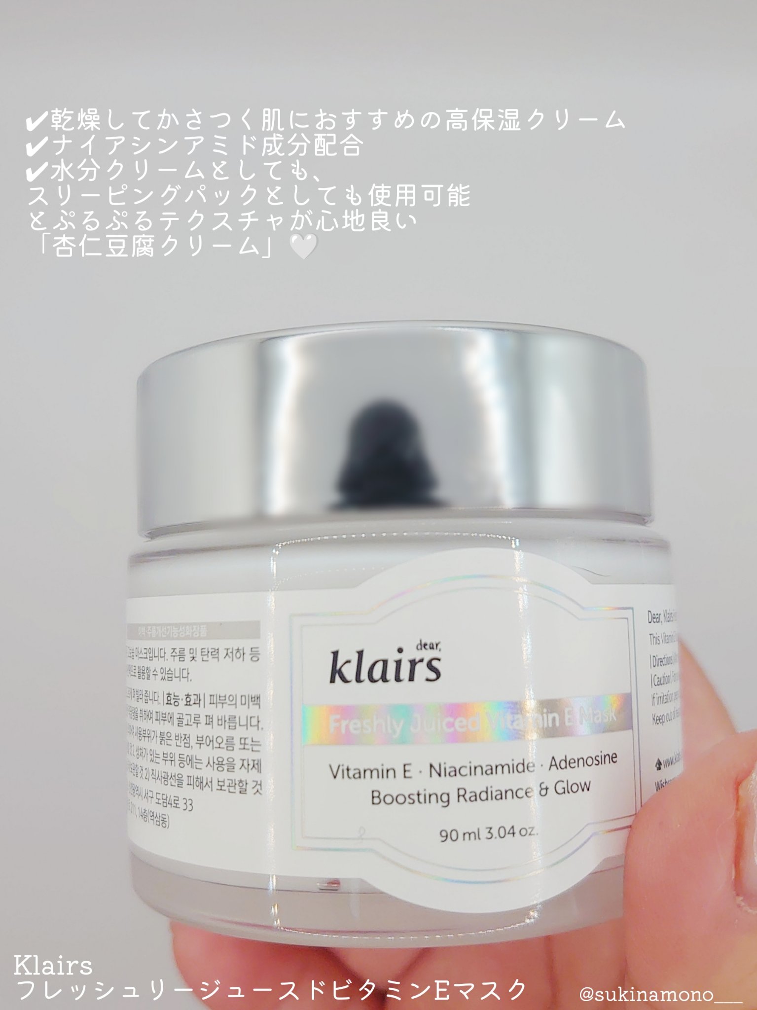 KlairsフレッシュリージュースドビタミンEマスク提供してもらったクリームだけど、昔も使っててやっぱりこれ良いなと実感杏仁豆腐みたいなテクスチャーで塗った後もベタつかない不思議な感覚油っぽくないのに保湿されてる🧐水分感もたっぷり!#PR#韓...