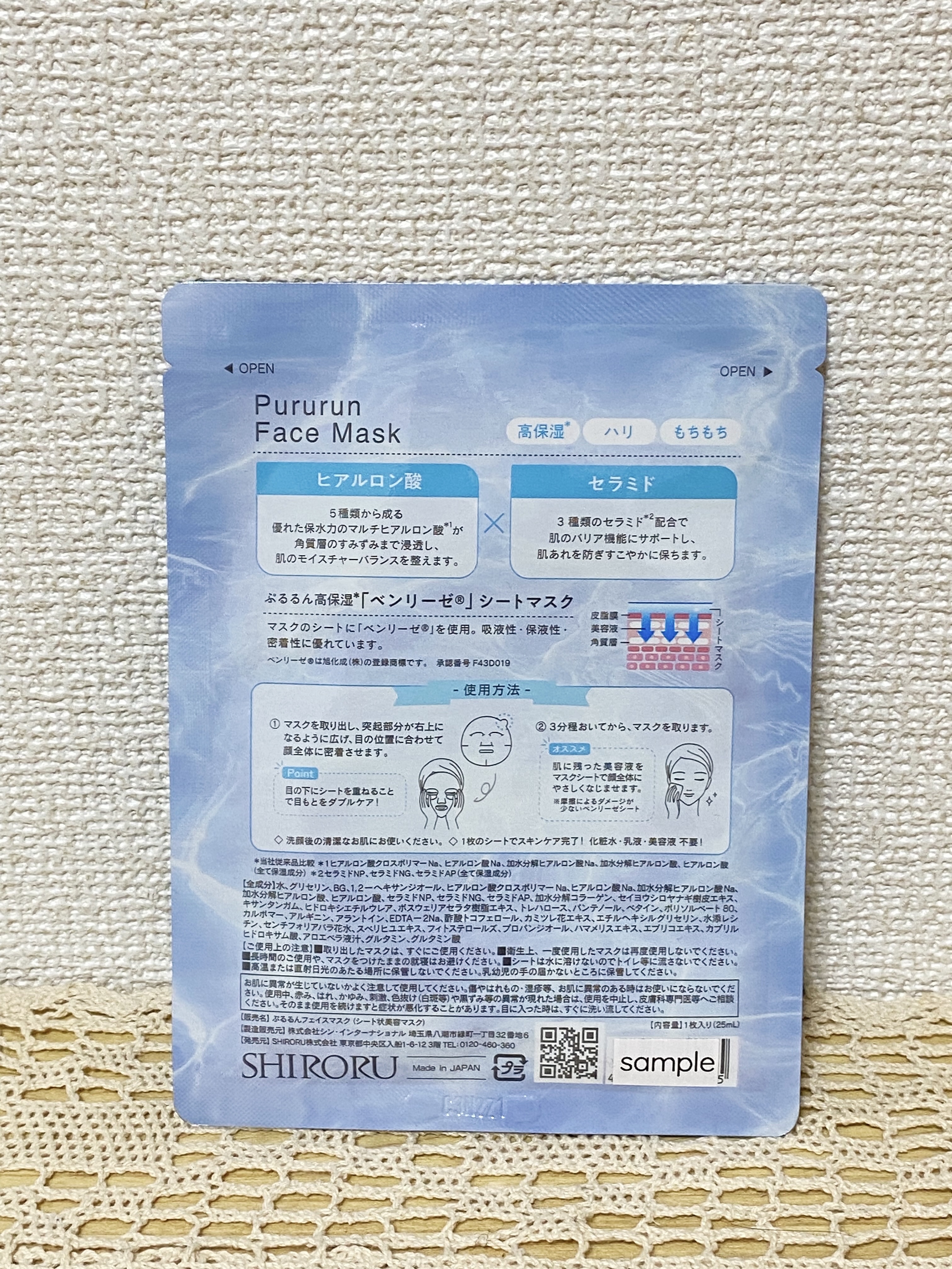 商品詳細情報SHIRORU ぷるるんフェイスマスク
