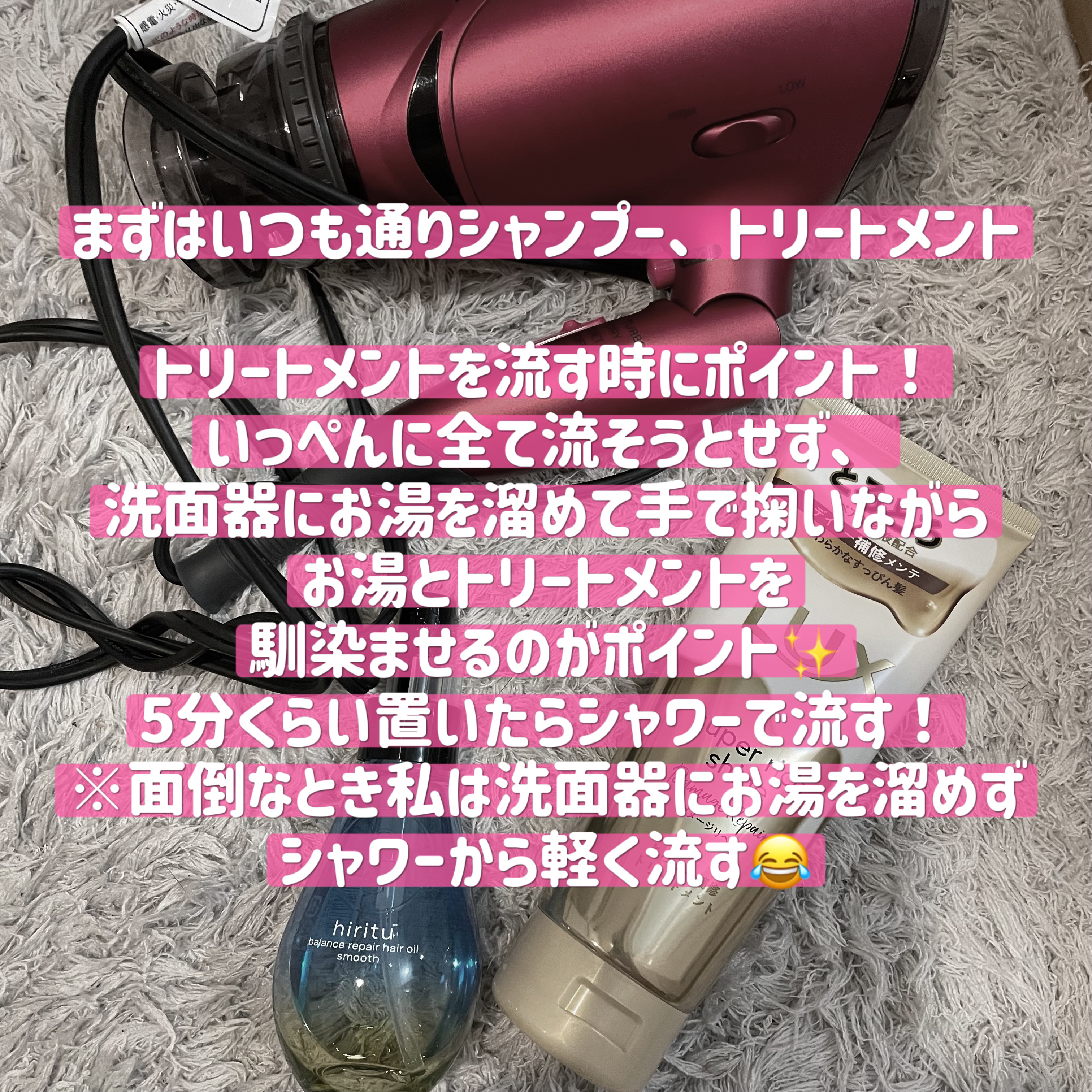 | なじませやすく、とぅるんとぅるんに✨ドライヤー後は手ぐしが絡まず すっと通りサラサラで、 まとまりやすさも感じました◎ | 詳細を見る | ||