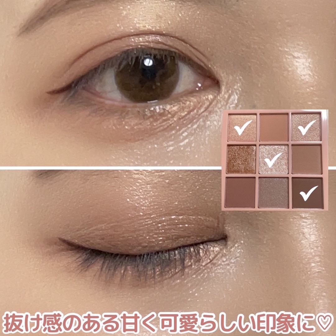使いやすいカラーがお気に入り ☑︎パレットが可愛い♡ ラメが繊細で日常使いしやすい! 自然な発色なのでお仕事の時やおでかけの時にも✨ サラッとした質感で塗りやすく 二重幅に溜まりにくい所もお気に入り✨