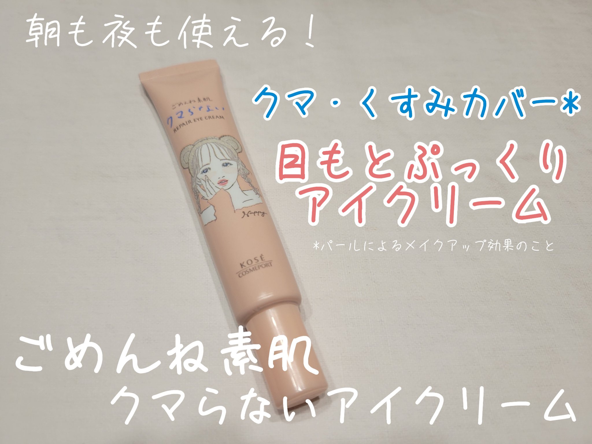 - 好調なごめんね素肌シリーズから、 若年層の目もと悩みを徹底ケアするアイクリームを新発売! ❶あらゆる目もと悩みを集中ケア!〈 乾燥ダメージ+くすみ※+涙袋うるおいケア 〉 濃厚なクリームで、乾燥やくすみ※の気にならない、ぷっくりうるおった目もとへみちびきます。 【乾燥ダメージケア】レチノール誘導体(保湿) 【くすみ※ケア】ナイアシンアミド・ビタミンC誘導体(保湿) 【涙袋うるおいケア】浸透型ヒアルロン酸・白キクラゲ多糖体・セラミド(保湿) ❷うるおいをあたえながら、クマ・くすみもカバー !※2すっぴんからキレイな目もとへ トーンアップパール配合!クマやくすみをナチュラルにカバーします。※2 ❸皮膚が薄く、デリケートな目もとにもやさしい使い心地 【低刺激処方】弱酸性 無香料 無鉱物油 アルコールフリー パラベンフリー(防腐剤) 紫外線吸収剤フリー シリコーンフリー 【各種試験済み】パッチテスト アレルギーテスト スティンギングテスト 敏感肌自覚者による連用テスト 乾燥小じわの効能評価試験済み (全ての方に、刺激やアレルギーなどが起きないというわけではありません) ※乾燥による ※2パールによるトーンアップ(メイク)効果のこと