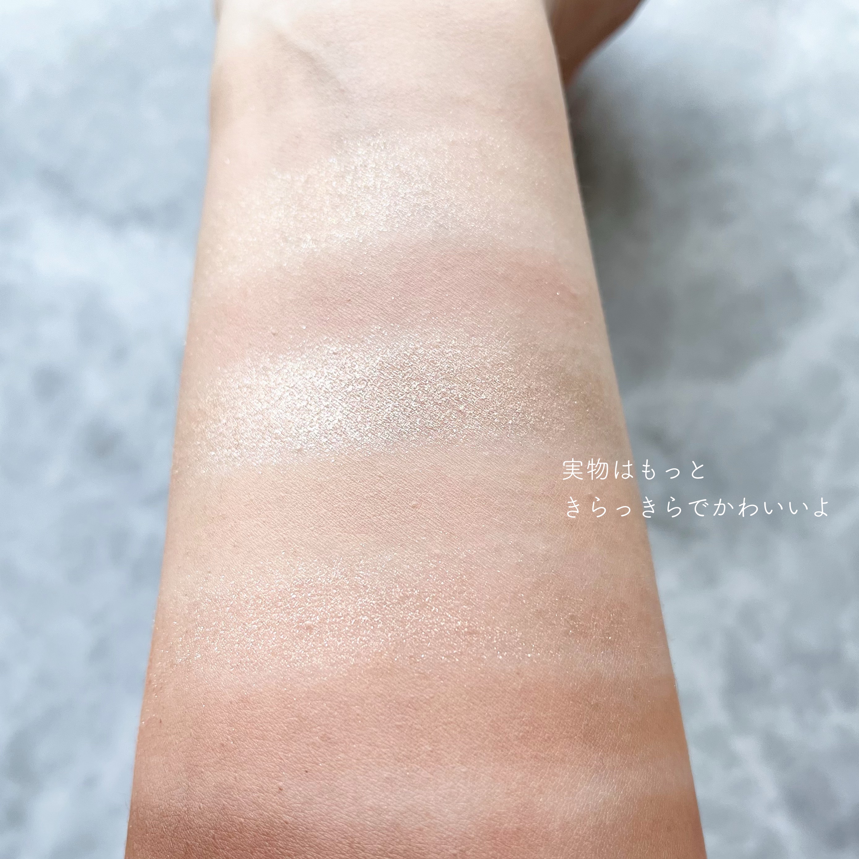 指で押さえてむにゅっと パールでキラキラ感はあるけど、細かいので本当に上品♡ 肌に乗せると見た目よりも明るいテラコッタオレンジに発色しました。 さらさらなのに伸びもよく、濃さも自由自在で、とても使いやすい&かわいい新作チークでした♡♡♡