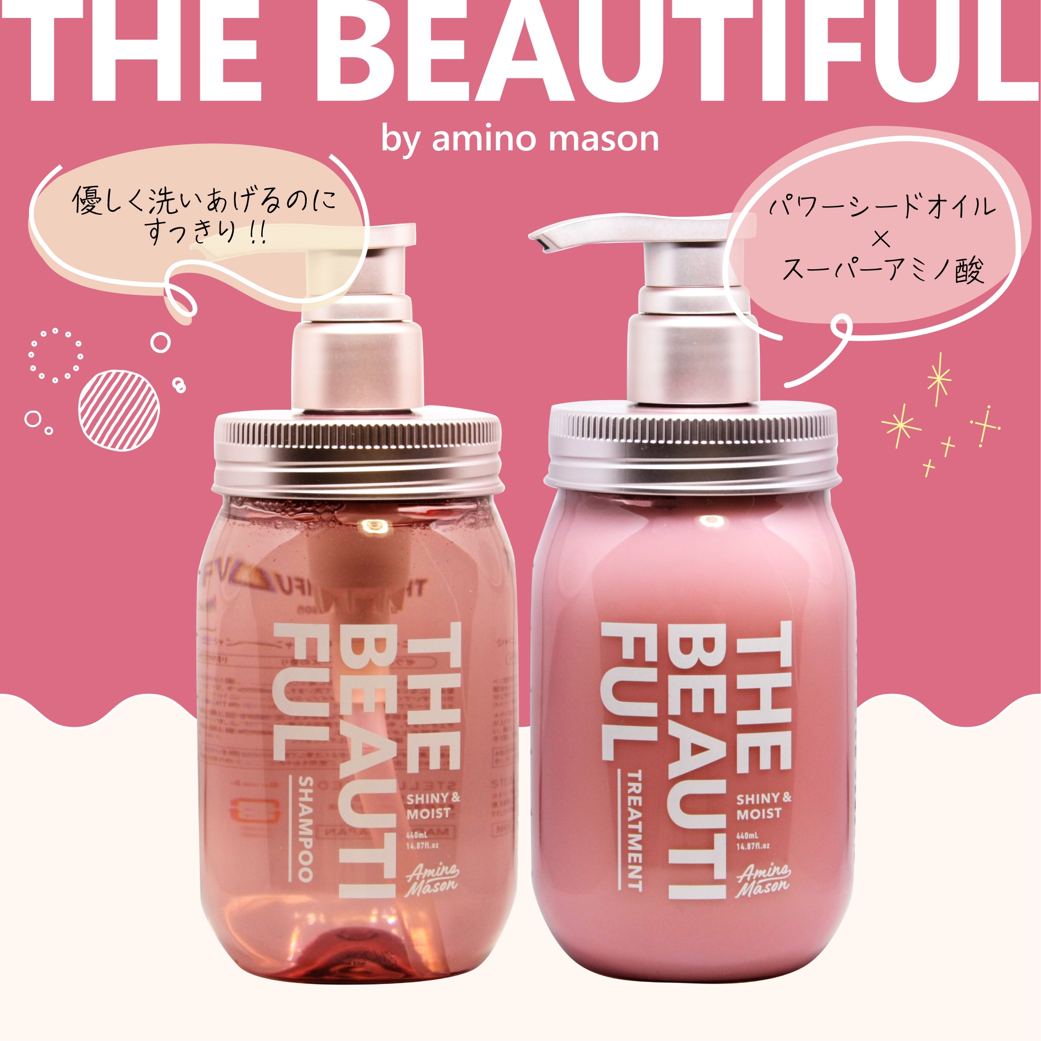 コールドプレスされたシードオイル✱2配合‼️ NEOスーパーアミノ酸ブレンド。髪の印象変わる✱1神艶✱4レシピ。 シャンプーは泡立ち良くてモコモコ🫧 トリートメントは、乳液状で髪全体に馴染ませやすい.ᐟ アウトバスミルクを忘れてもドライヤー後はストンと纏まる ボトルも英字&ピンクで可愛くって女子感あふれる香りでバスタイムが華やかになるよ💐✨