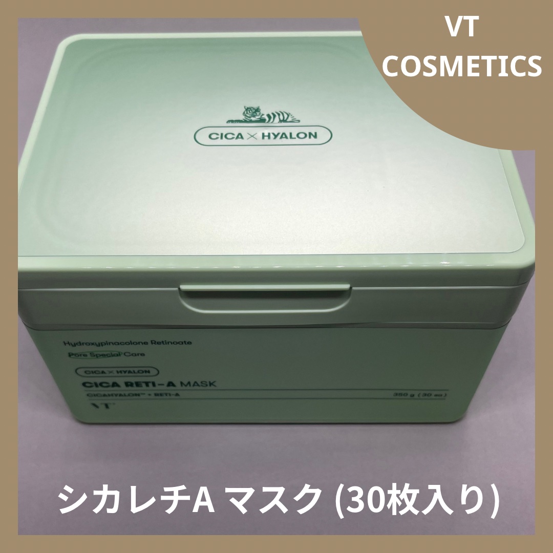 VTシカレチAマスクVTCICACICARETI-AMASK・qoo10メガ割にて購入。・レチノールやバクチオールが入っているということで成分に惹かれて購入。・さっぱりしていて使いやすい。シートは濃い緑のパッケージのCICAのものより気持ち厚...