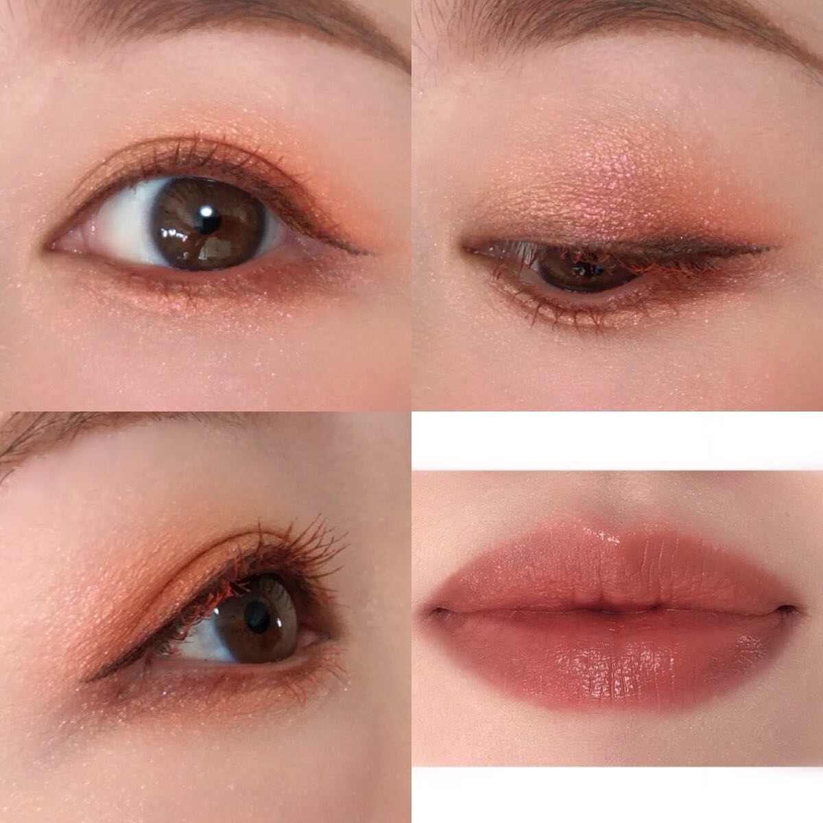 色味は秋らしい温かみのある配色で、目元を華やかに演出します🍁 全体的に細かいラメが含まれており、上品なツヤ感を演出します✨ しっとりとした粉質で、まぶたにしっかりと密着します👁️🗨️