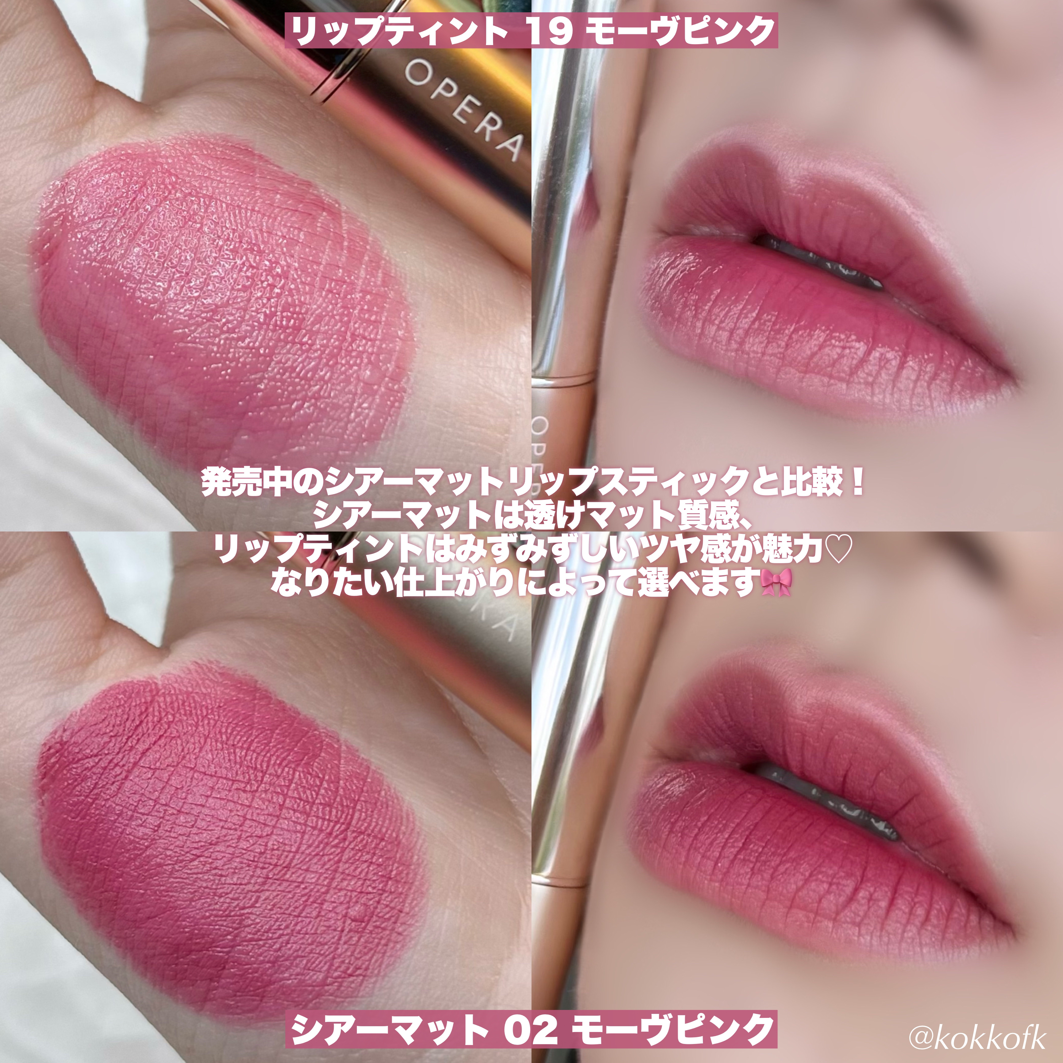 オペラのティントリップとマットリップを比較していきたいと思います!【使った商品】OPERA①オペラリップティントN11フィグ②オペラシアーマットリップスティック02モーヴピンク【塗り心地】どちらもなめらかで塗りやすいです。【仕上がり】ティント...