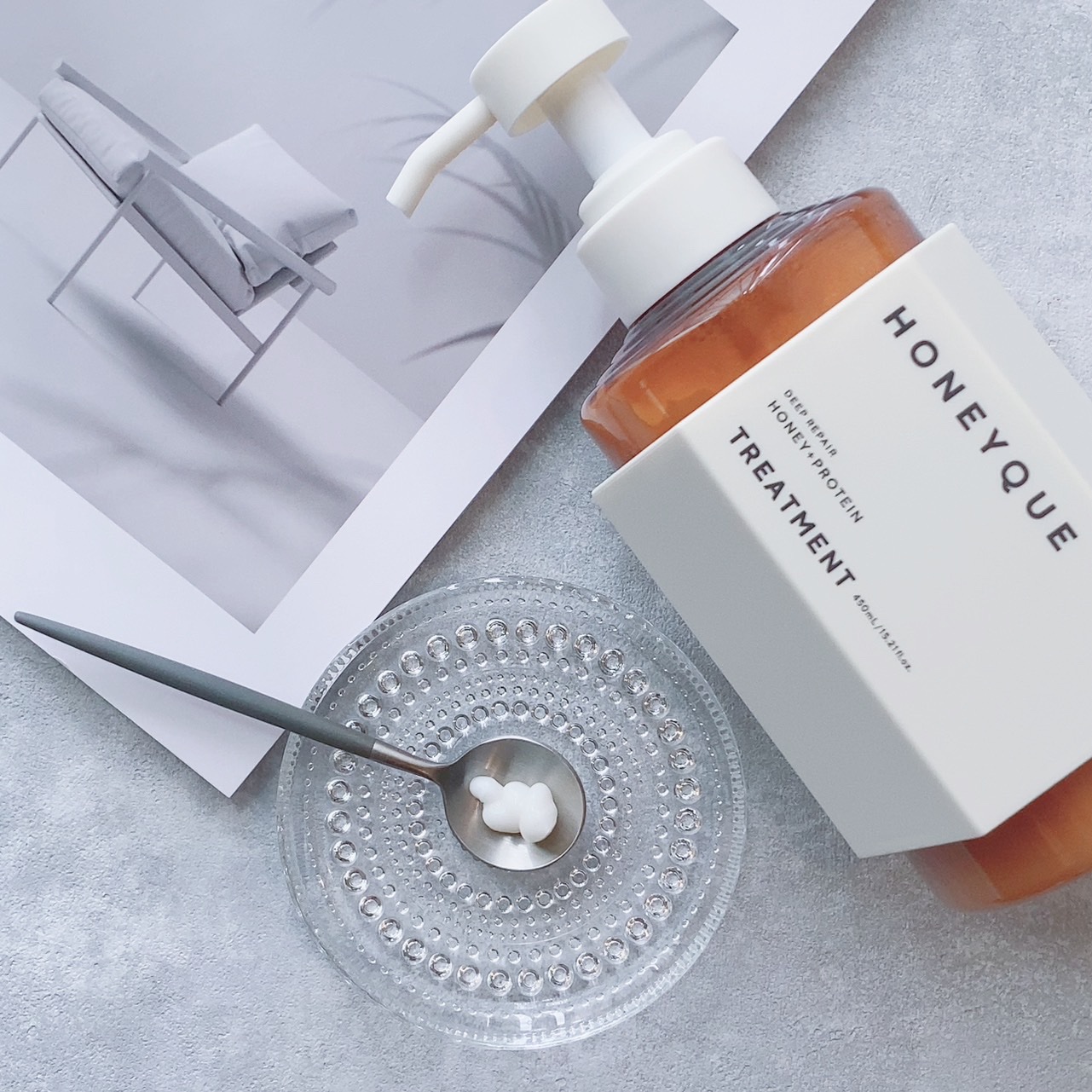 髪の芯から鍛える*新発想のハニークは、潤い感だけではない、新しいはちみつシャンプー🍯🫧 泡立ちの良さを感じるのに、洗い流した後はシャンプーのみでも、きしみにくく、しっとりとした使い心地だなと感じます🌸 保湿系シャントリにありがちな、オイリーになりすぎる感じが少なく、しっとりツヤサラになるなと感じました👀🌸