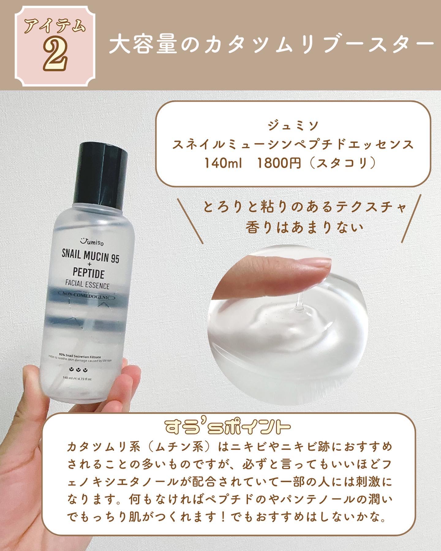 ヒュッゲ @hyggee_official_japan PH ヒアルロンジェルクレンザー 400ML ジュミソ @jumiso_jp スネイルミューシン+ペプチドエッセンス 140ML ピョンガンユル @pyunkangyul ブラックティーインリッチドクリーム ラウンドラップ @round.lab 白樺水分モイスチャー日焼け止めクリーム SPF 50+PA++++ 50ML