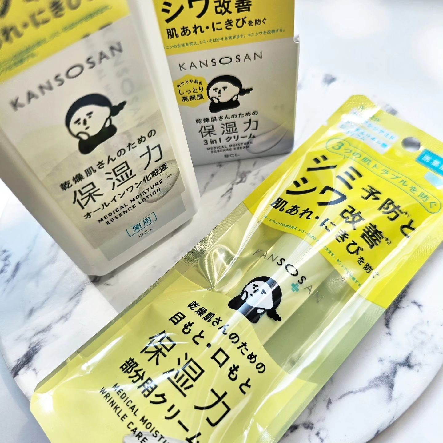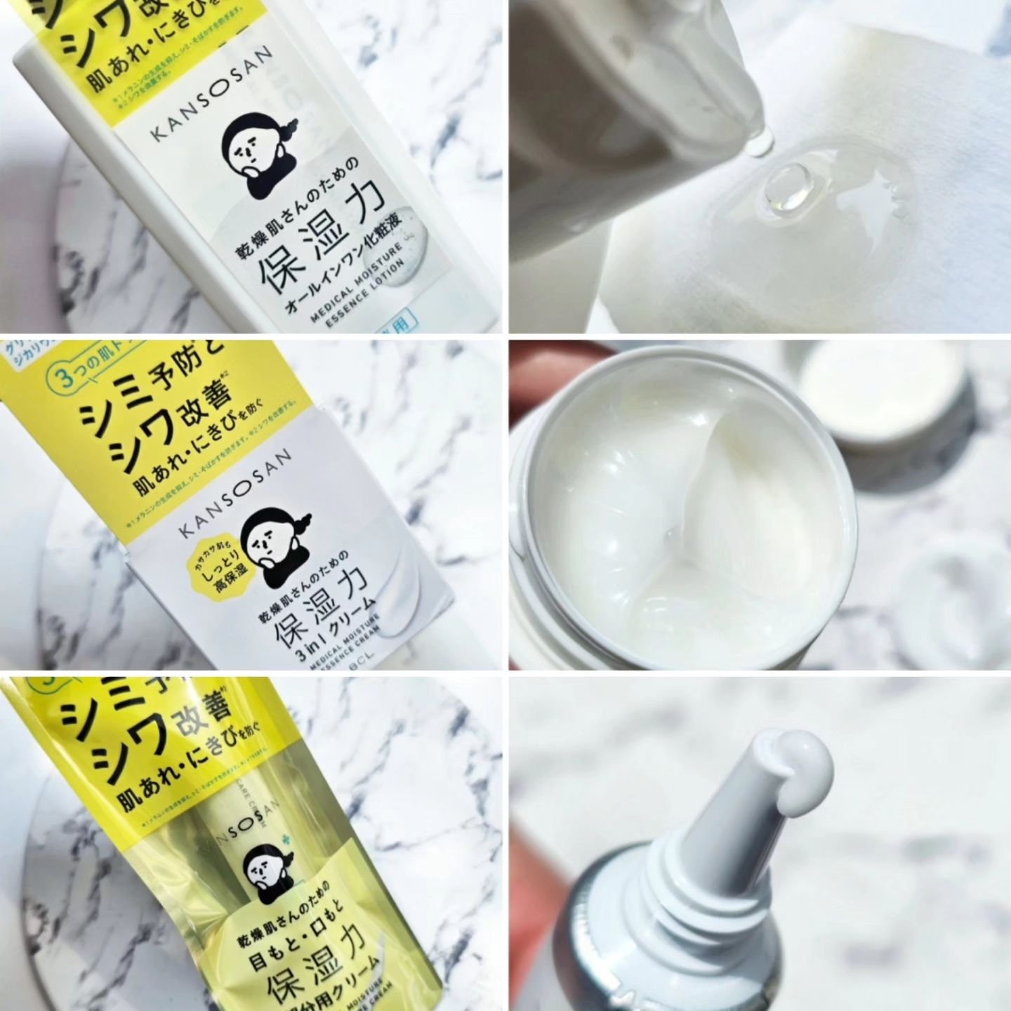 1本で3つの効果、しっとり化粧液 とろんと肌あたりやわらかく浸透(角層まで)しっかり潤う✨️ 目もと・口もと、気になる部分の集中ケアクリーム!こっくりとしたテクスチャーですが伸ばしやすく、クリームがピタッと密着。 1個で3つの効果、しっとりクリーム とろんと伸びて、バームのようにピタッと潤い密封。