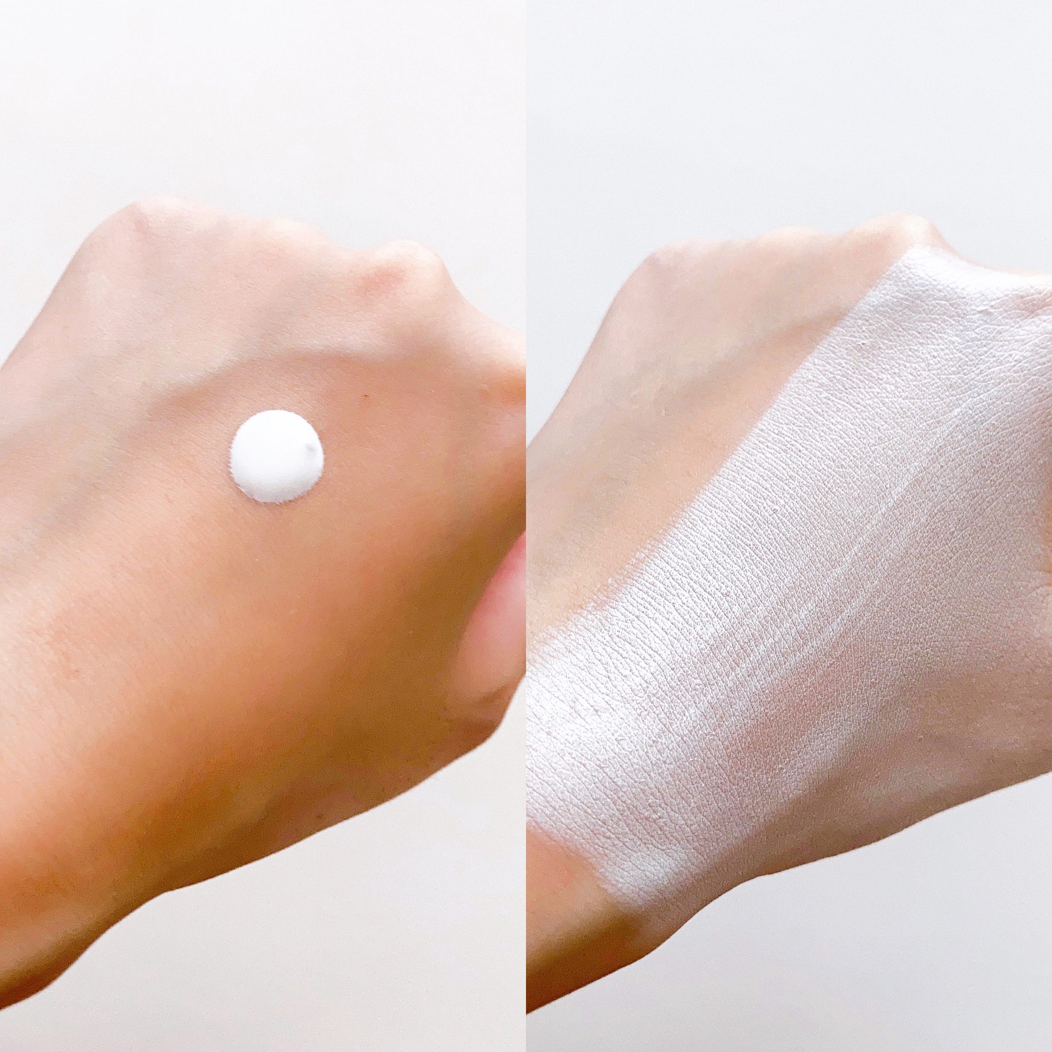 今すぐ色白肌*に見せたい人向き🤍 美白は日々の積み重ねだけどとりあえず白く見せたい時や顔と首のトーン違いが悩みの時に使ったらめちゃよかったよ〜!! テクスチャーはほぼ水おしろい! シャカシャカ振るところもつけた時の伸びの良さもつけてないと錯覚する軽い着け心地も水おしろいそのまんま🍼✨ サラサラで速乾性が高くて衣類への色移りもしにくい🫶🏻 ウォータープルーフだけど油分には弱いから落とす時オイル系使えば擦らなくてもスルッと落ちるよ!