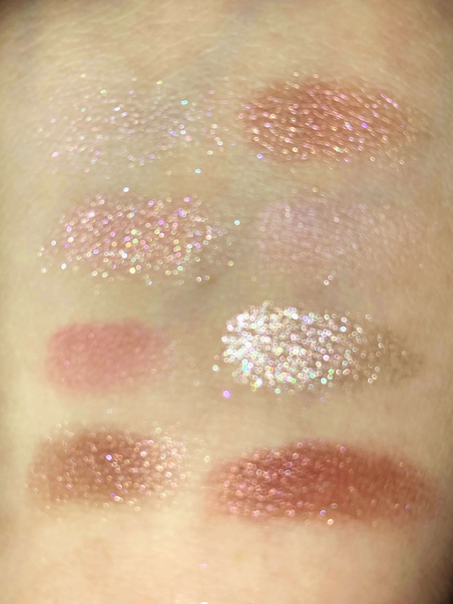 捨て色がない多色パレット始めてすぎる、、!ギラギラの大粒ラメも、パールもあっていろんなピンクが詰まってる!ピンクメイクはこれだけで完成しますね。 白めのラメは涙袋、濃いめピンクはメインカラー、濃いめピンクは締め色だったり三角ゾーンに使ってます。 ナチュラルに粘膜感が出る!多分いろいろなメイクに使えるかも?