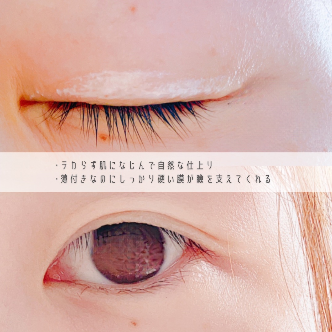 - 【感動の自然さ】 ・膜を作ってまぶたに折り込むタイプ ・ふたえの幅を広げたい方、ひとえの方へ ・今までの皮膜では叶わなかった方に ・薄付きなのにしっかり硬い膜でまぶたを支える ・テカらず肌になじむ ・天然ゴムラテックスフリーの新処方(シン・ラテックス) ・目元のハリケアにも*メイクアップ効果による ・クセ付け・保湿成分配合