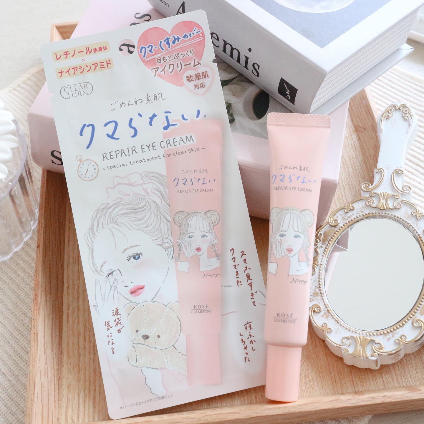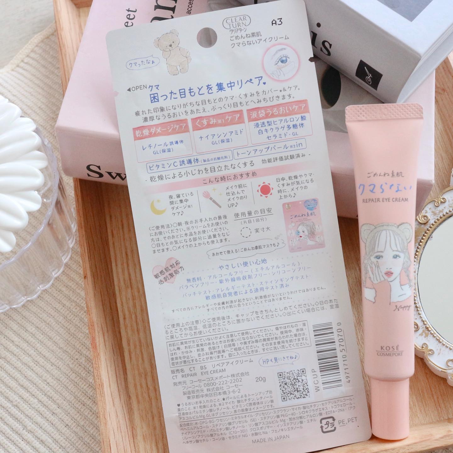 『クリアターン ごめんね素肌 クマらないアイクリーム』 若年層の目もと悩みを徹底ケアするアイクリームを新発売! 濃厚なクリームで、乾燥やくすみの気にならない、ぷっくりうるおった目もとへみちびきます。 イラストレーターNAPPYさんのイラストです!本体もピンクで可愛いデザイン!