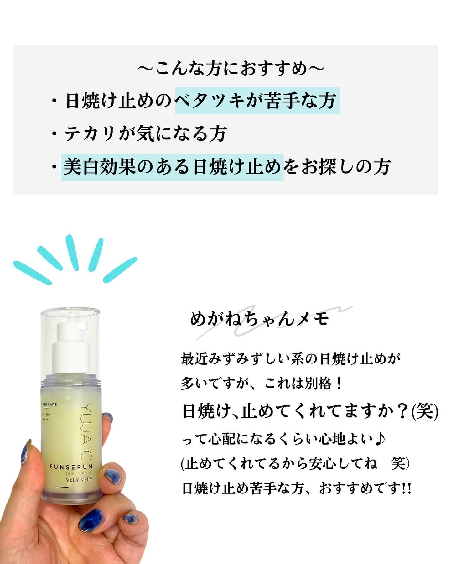 私的にとても乾燥しにくい日焼け止め!VELYVELY毛穴ケアゆずCサンセラムレビューVELYVELYの毛穴ケアゆずCサンセラムを購入しました。こちらみずみずしいジェル状なのでまるでスキンケアのようにしっとりしてくれるのがお気に入り。でもベタつ...