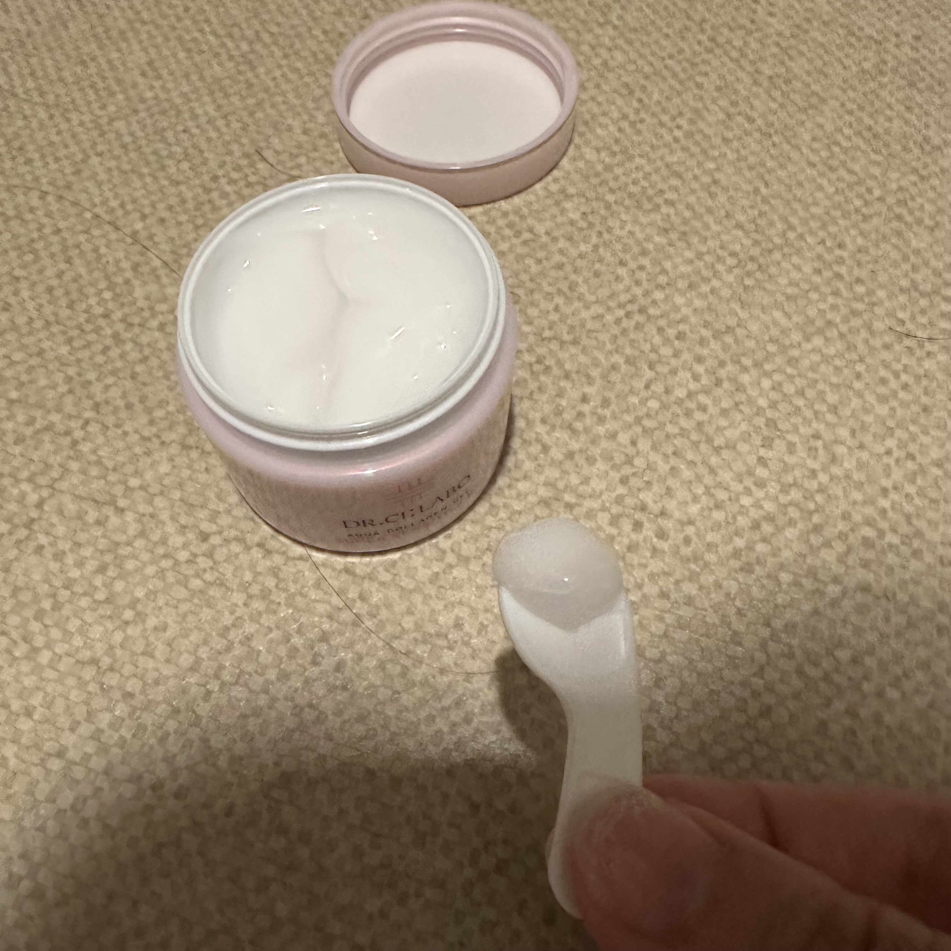 テクスチャーは、とろっとしているのでなじみやすいです。 なので、少しずつ指でとって使用方法通りに少しずつぬって使っています。 まずは鼻まわり、次に額、残りの部分にぬって、最後に首にぬっています。 ふわっと優しい香りがして心地よかったです。