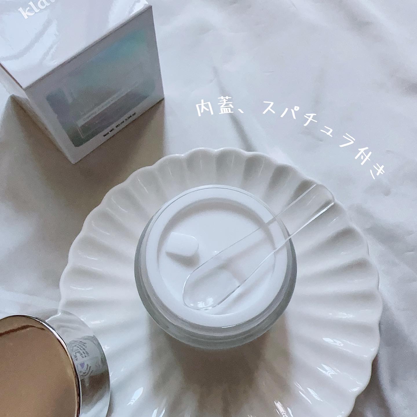 ビタミンE・ナイアシンアミド・アデノシンなど 明るく透明感のある若々しい肌へ。 杏仁豆腐みたいなテクスチャーも面白い。乾燥が気になる日にはたっぷり塗ってプルプル肌に。 ほんのりラベンダーのような香り。ビタミンチャージセラムとセット使いでさらにサポートしてくれるそう^ ^