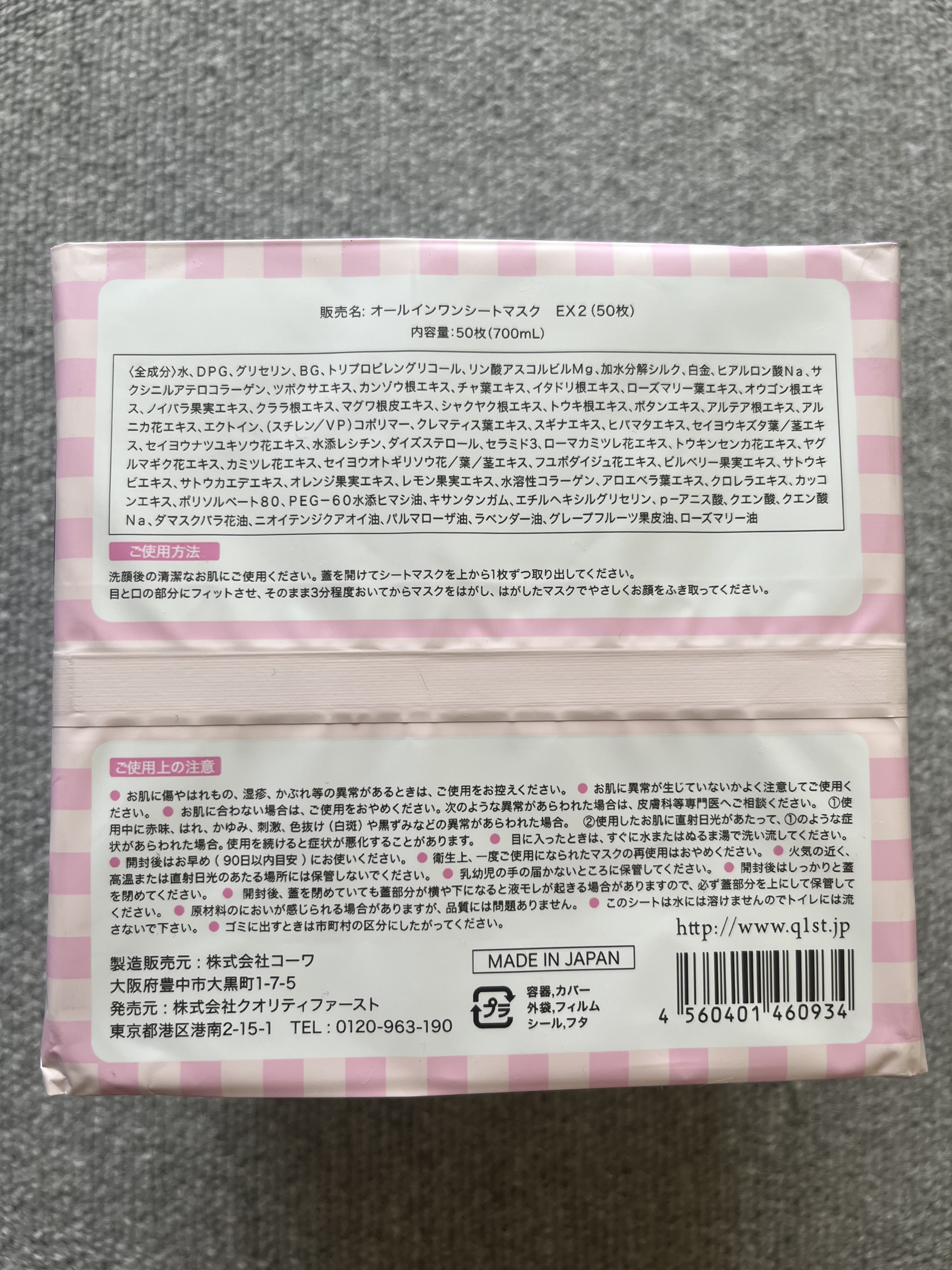 - <7枚> エクトイン、水、BG、グリセリン、ヒアルロン酸Na、キサンタンガム、リン酸アスコルビルMg、アロエベラ葉エキス、チャ葉エキス、ノイバラ果実エキス、オウゴン根エキス、水溶性コラーゲン、オレンジ果実エキス、ラベンダー油、サトウキビエキス、エチルヘキシルグリセリン、ツボクサエキス、DPG、ニオイテンジクアオイ油、カミツレ花エキス、水添レシチン、ダイズステロール、ローズマリー葉エキス、クエン酸、カンゾウ根エキス、セイヨウキズタ葉/茎エキス、レモン果実エキス、セイヨウオトギリソウ花/葉/茎エキス、トウキンセンカ花エキス、フユボダイジュ花エキス、ヤグルマギク花エキス、ローマカミツレ花エキス、加水分解シルク、PEG-60水添ヒマシ油、トウキ根エキス、シャクヤク根エキス、マグワ根皮エキス、クララ根エキス、クロレラエキス、ビルベリー果実エキス、イタドリ根エキス、カッコンエキス、クエン酸Na、グレープフルーツ果皮油、ダマスクバラ花油、セラミド3、白金、ポリソルベート80、ボタンエキス、ローズマリー油、パルマローザ油、アルニカ花エキス、アルテア根エキス、スギナエキス、(スチレン/VP)コポリマー、サトウカエデエキス、サクシニルアテロコラーゲン、クレマティス葉エキス、ヒバマタエキス、セイヨウナツユキソウ花エキス、トリプロピレングリコール、p-アニス酸 <50枚> エクトイン、水、BG、グリセリン、ヒアルロン酸Na、キサンタンガム、リン酸アスコルビルMg、アロエベラ葉エキス、チャ葉エキス、ノイバラ果実エキス、オウゴン根エキス、水溶性コラーゲン、オレンジ果実エキス、ラベンダー油、サトウキビエキス、エチルヘキシルグリセリン、ツボクサエキス、DPG、ニオイテンジクアオイ油、カミツレ花エキス、水添レシチン、ダイズステロール、ローズマリー葉エキス、クエン酸、カンゾウ根エキス、セイヨウキズタ葉/茎エキス、レモン果実エキス、セイヨウオトギリソウ花/葉/茎エキス、トウキンセンカ花エキス、フユボダイジュ花エキス、ヤグルマギク花エキス、ローマカミツレ花エキス、加水分解シルク、PEG-60水添ヒマシ油、トウキ根エキス、シャクヤク根エキス、マグワ根皮エキス、クララ根エキス、クロレラエキス、ビルベリー果実エキス、イタドリ根エキス、カッコンエキス、クエン酸Na、グレープフルーツ果皮油、ダマスクバラ花油、セラミド3、白金、ポリソルベート80、ボタンエキス、ローズマリー油、パルマローザ油、アルニカ花エキス、アルテア根エキス、スギナエキス、(スチレン/VP)コポリマー、サトウカエデエキス、サクシニルアテロコラーゲン、クレマティス葉エキス、ヒバマタエキス、セイヨウナツユキソウ花エキス、トリプロピレングリコール、p-アニス酸