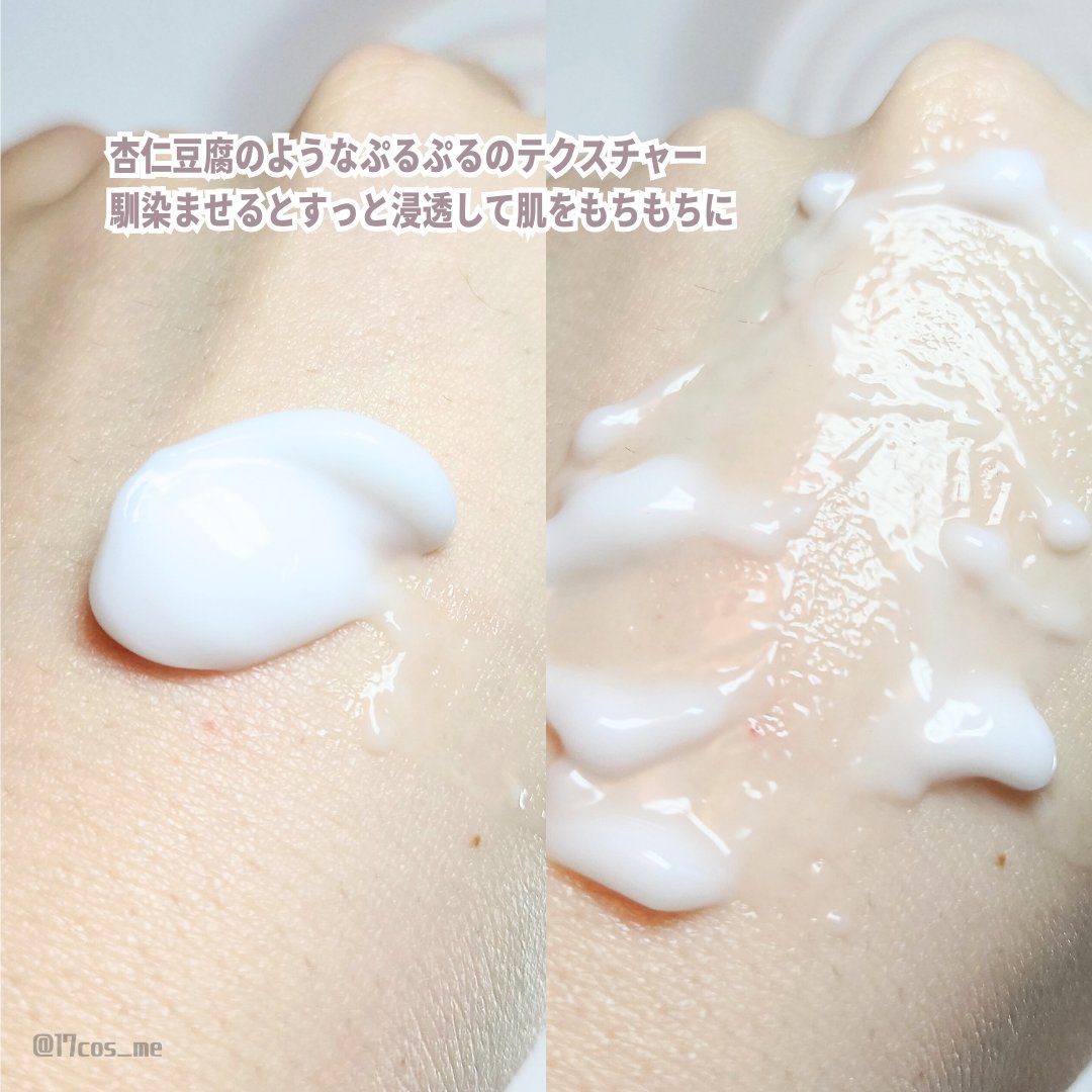ビタミンE・ナイアシンアミド・アデノシンなど 明るく透明感のある若々しい肌へ。 杏仁豆腐みたいなテクスチャーも面白い。乾燥が気になる日にはたっぷり塗ってプルプル肌に。 ほんのりラベンダーのような香り。ビタミンチャージセラムとセット使いでさらにサポートしてくれるそう^ ^