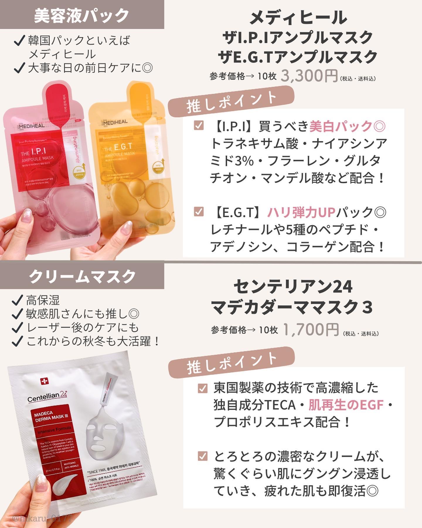 この中でも、ご相談いただいた時にまずオススメするのがジョンセンムル🙌 カラーや肌質など、ご自身にあったものを選べるのですが、私はトーンアップを使ってます💕 全体的なバランスが良いので、ひかるの中でも使用頻度が高いアイテムです💪✨ パパパッとメイクを済ませたいときや、ノーファンデな日にはナンバーズイン😍 これあると便利ですよ〜💓 商品名の通り、陶器肌に仕上がるし、マスクに本当に付きにくい✨ 保湿力やツヤ感、テクスチャーやカバー力など、それぞれ星や画像を参考に比較して、お買い物の参考に少しでもなれば嬉しいです🙌💕