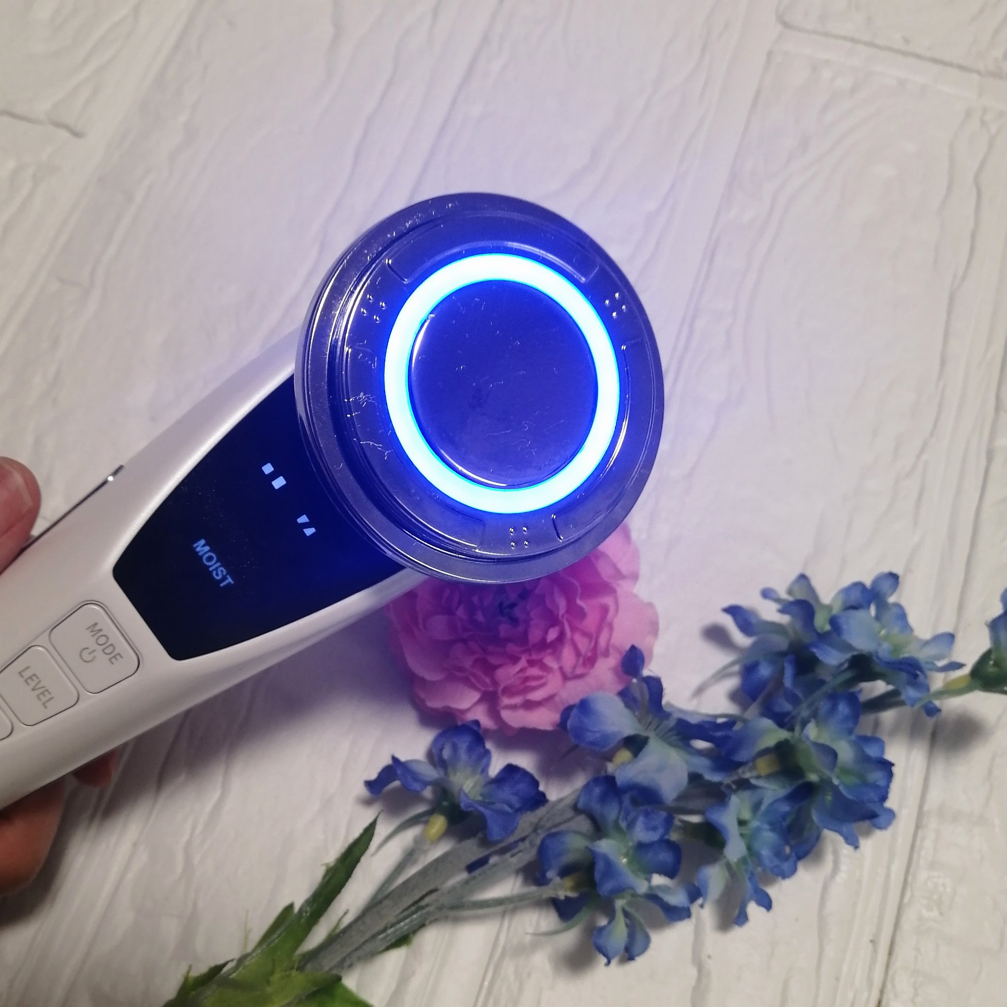 4つのモードで –美白*、ハリ・弾力、保湿ケアー *メラニンの生成を抑えシミ・そばかすを防ぐ 毛穴汚れなどをイオンと振動で取り除いてくれます コットンリングがマグネット式になっているので簡単に脱着できて楽ちんです LEDの色によって効果も変わるそう 赤色:コラーゲンの生成を促し、肌のハリ・弾力ケア