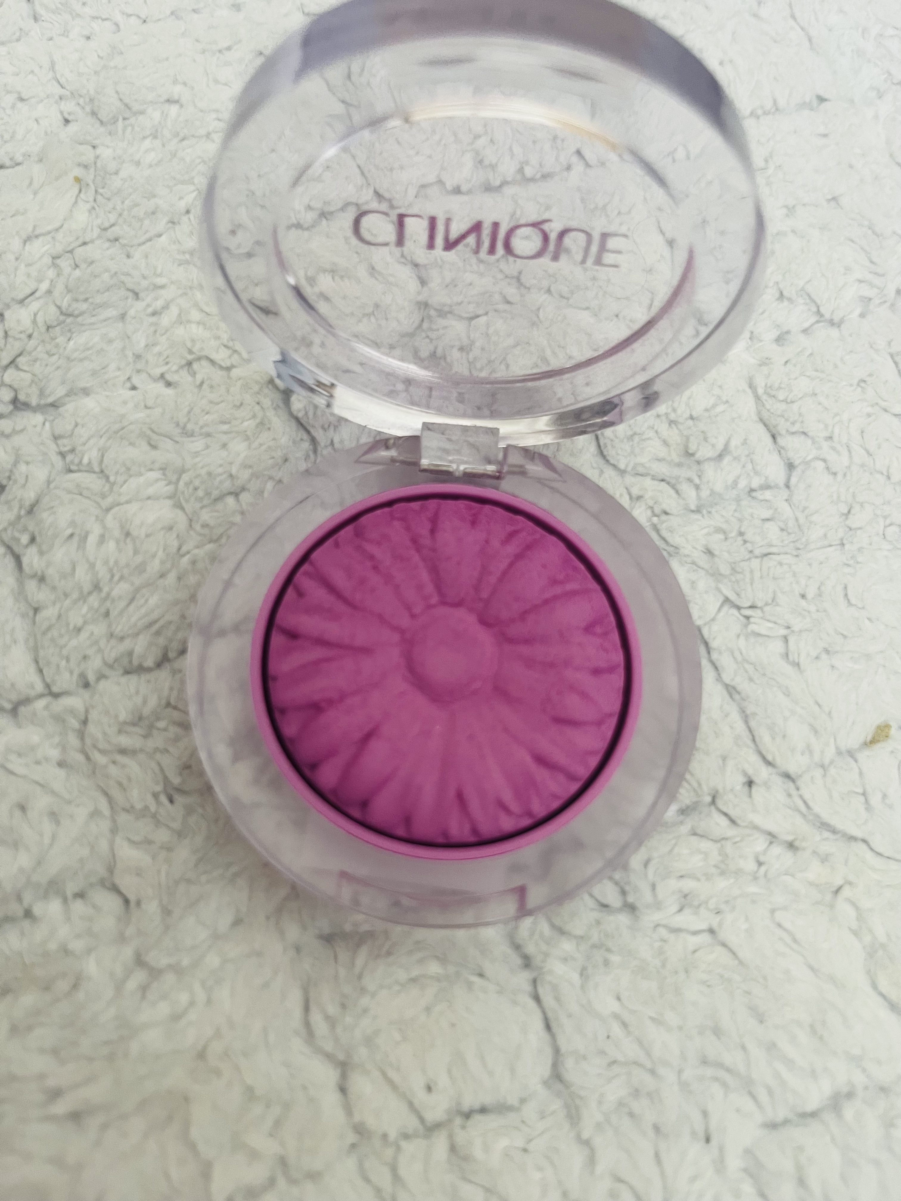 青みが強いラベンダーのチークです。青みが得意なブルベの方におすすめです。 粉質は硬めですが発色がよく頬にふんわり色づきます。 見た目が濃い紫ですが頬にのせると意外にも薄づきで使いやすいです。