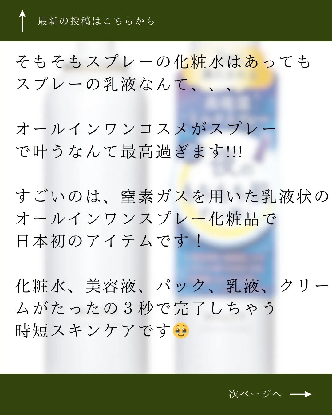 スプレーでスキンケア完了できるんですね! 欲しい!