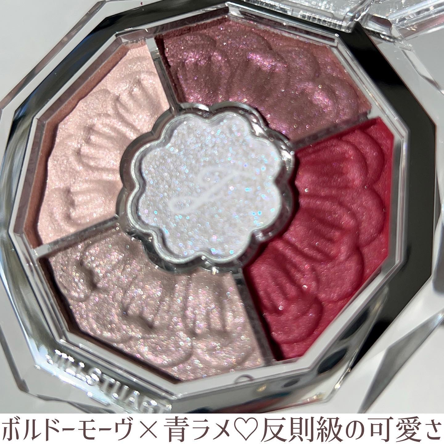 しっとりなめらかな粉質で、肌に光が溶け込む。 ツヤの美しさや発光具合は写真の通り。 ひと塗りで極上の艶を纏うことができます。 私が1番感動したのは 03 パールグロウ 水色やパープルをはじめとした細かいラメがぎっしり。 まるでダイヤモンドのような輝きでこれが最高💎 いざ肌に乗せると透明感たっぷりで白浮きしません。 今日アイシャドウとして使ってみたらまぶたが濡れたように艶めいて最高だった!! ラメ大好き芸人のみなさんは絶対チェックして欲しいです。 パケもしっかり可愛いです♡ 中身も見た目ももはや無敵。 これ、買わない理由ある??