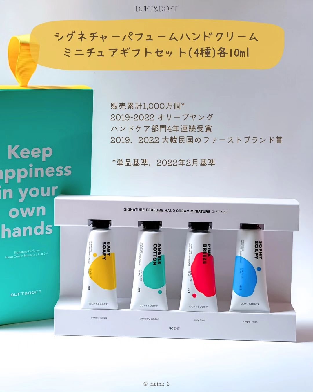 DUFT&DOFTシグネチャーパフュームハンドクリームミニチュアギフトセット清潔感も可愛さも、香りで叶えるDUFT&DOFTの【シグネチャーハンドクリーム】3種を使ってみたよ💐️🫧SOPHYSOPHY:ふわっと石けんのような清潔感🍑PINKB...