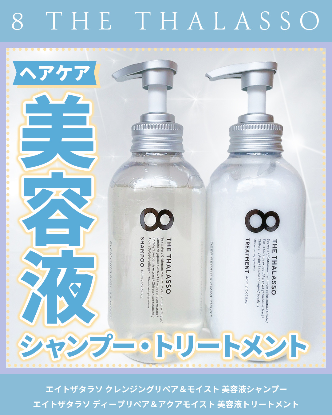 エイトザタラソ エイトザタラソ クレンジングリペア&モイスト 美容液シャンプー/ディープリペア&アクアモイスト 美容液トリートメント | 1,210円 |