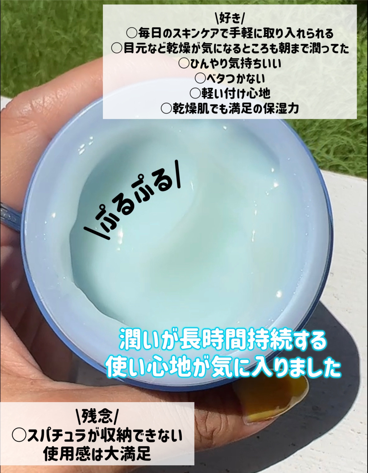 | シャリッ・ふわっとしたちょっと特徴的な シャーベットのようなテクスチャ。たっぷり塗ってもベタつきにくい🙌 | 詳細を見る | ||