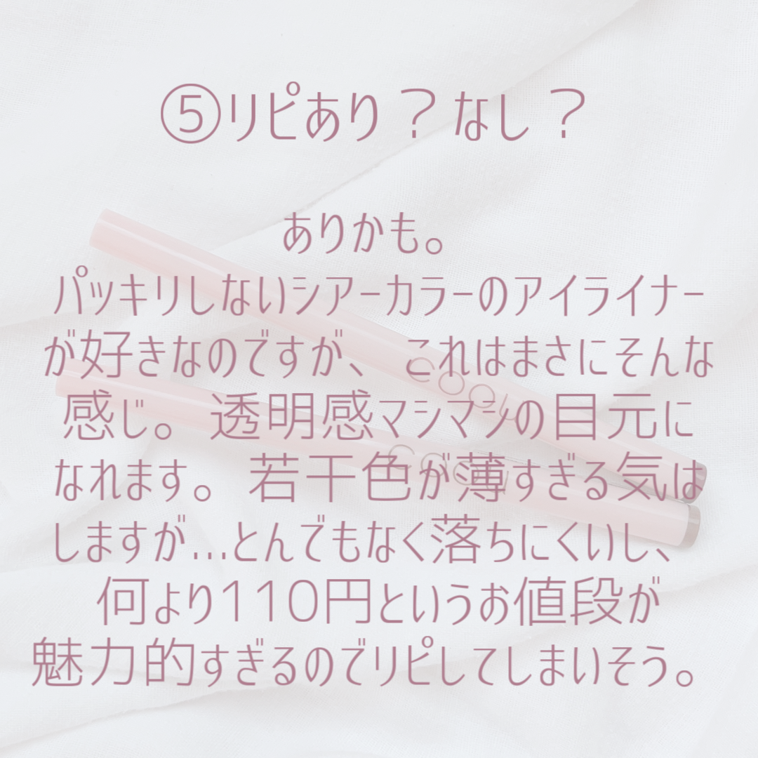 | メイクアップランキング第53位 | ラブライナーのアイライナーってほんと描きやすいから好き!重みのあるアルミボトルもお洒落な上に使いやすい | 詳細を見る | |