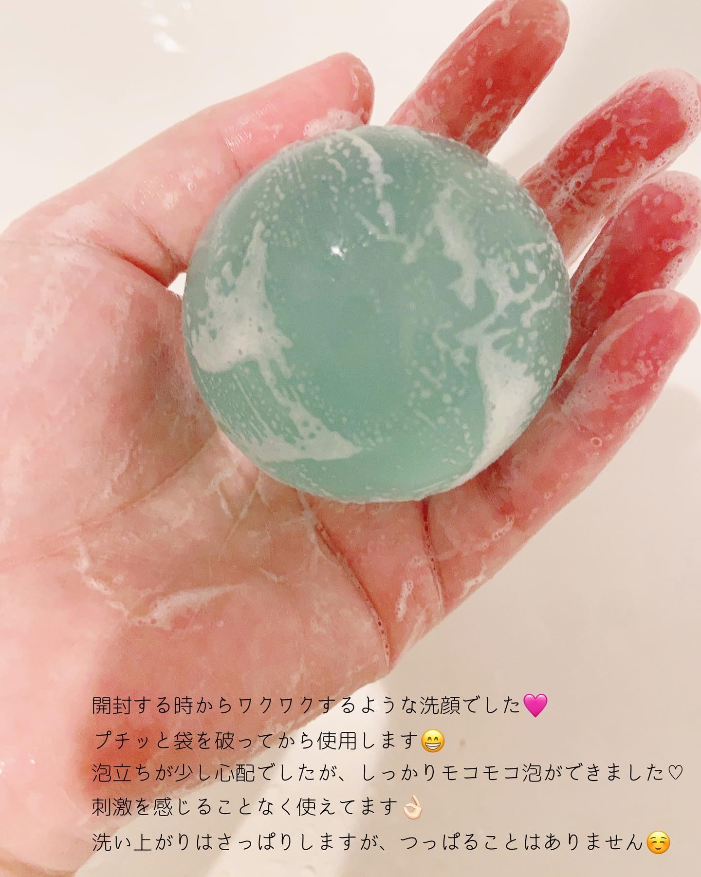 新感覚のプルプル洗顔石鹸で楽しく洗顔できます❤︎ セラミド・フコイダン配合のため 洗顔後は乾燥を防いでくれそうな洗い上がりです! 優しい泡なので摩擦レスで使用できました🙂