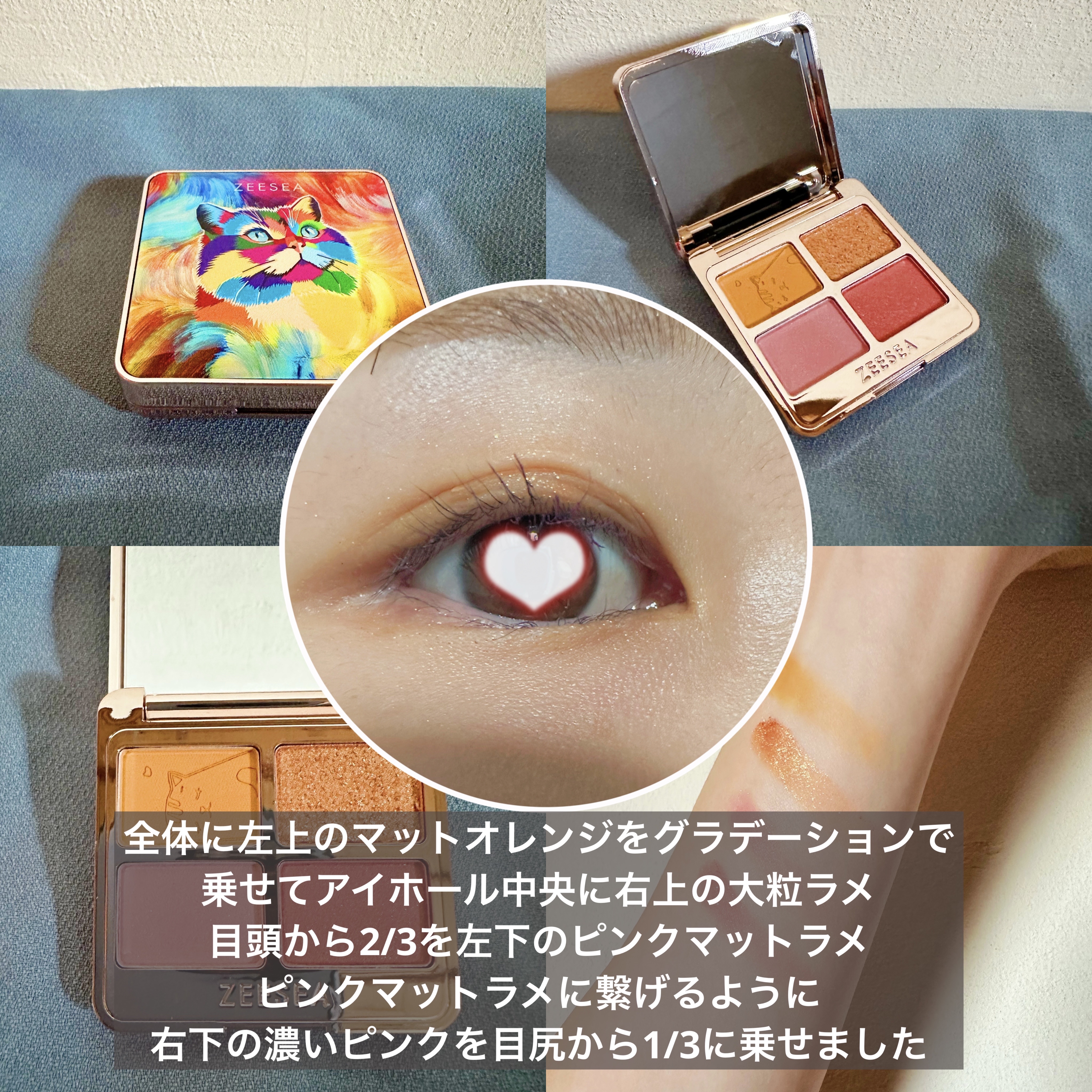 \アニマルシャドウ手持ちレビュー✨/ZEESEAのアニマルアイシャドウ、人気ですよね☺️🌈私も好きで3色持っているのでそれぞれレビューしていきます♫[03オレンジ]上段2色は黄み系オレンジ🍊下段2色は少しくすみのあるピンクとレッド✨オレンジと...