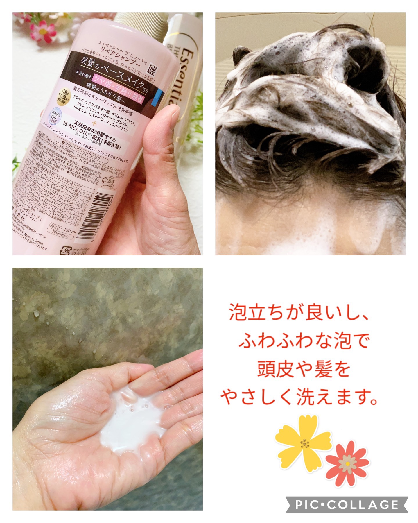 泡立ちは、とっても良かったです 香りは、他のエッセンシャルのシャンプーよりも穏やかでした 素髪を守るバリアシャンプー。雨の日、乾燥した日もしなやかにまとまる。 天然由来の美髪オイル18ーMEA OIL配合 (毛髪保護)