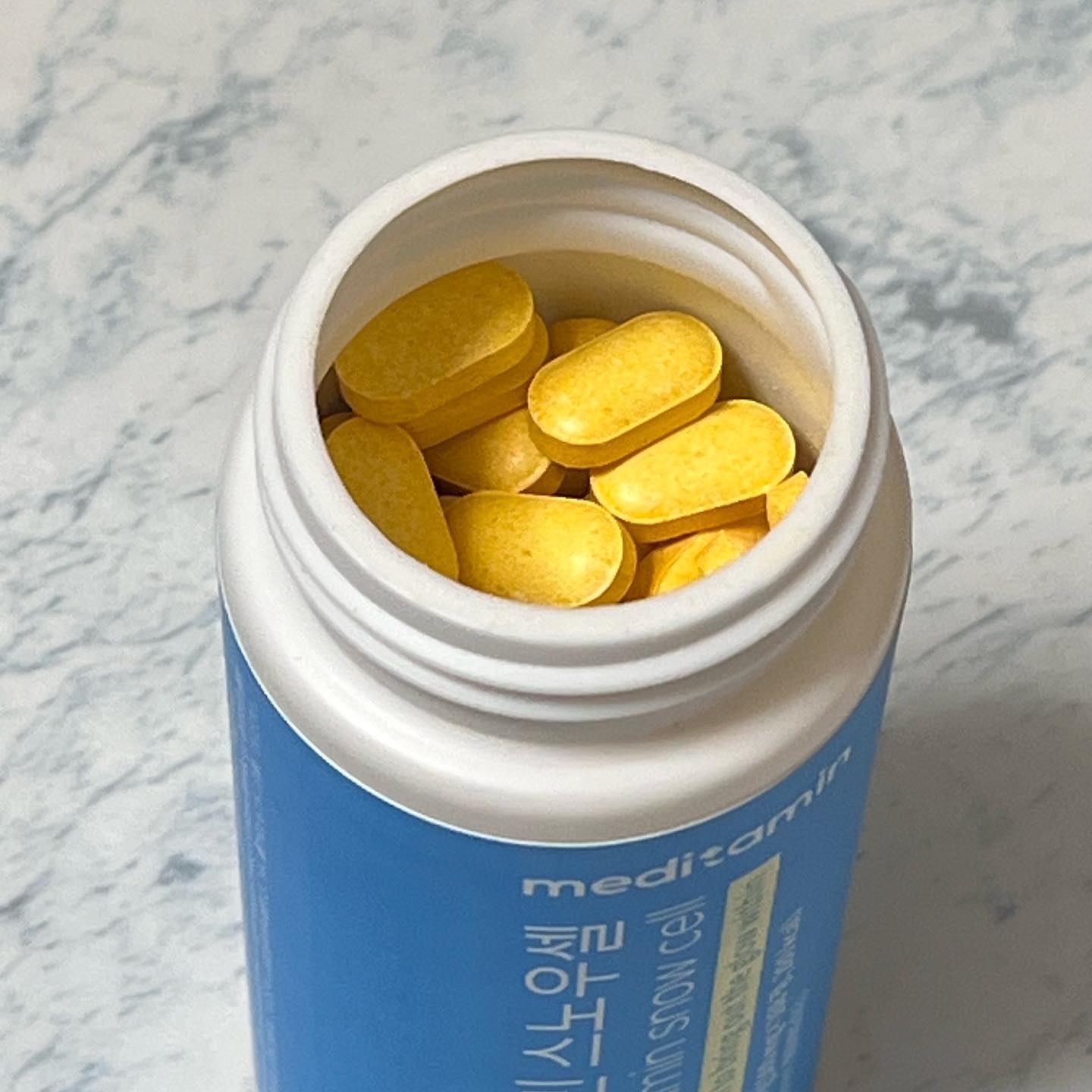 ❄️メディタミンスノーセル❄️1回3粒×1日2回168粒入りmeditaminはビタミン成分の効果を最大限引き出せる方法を研究しているビタミン専門ブランドです✨️タブレットは小さめなので飲みやすいです💊匂いはサプリ独特の穀物のような感じ、、普...