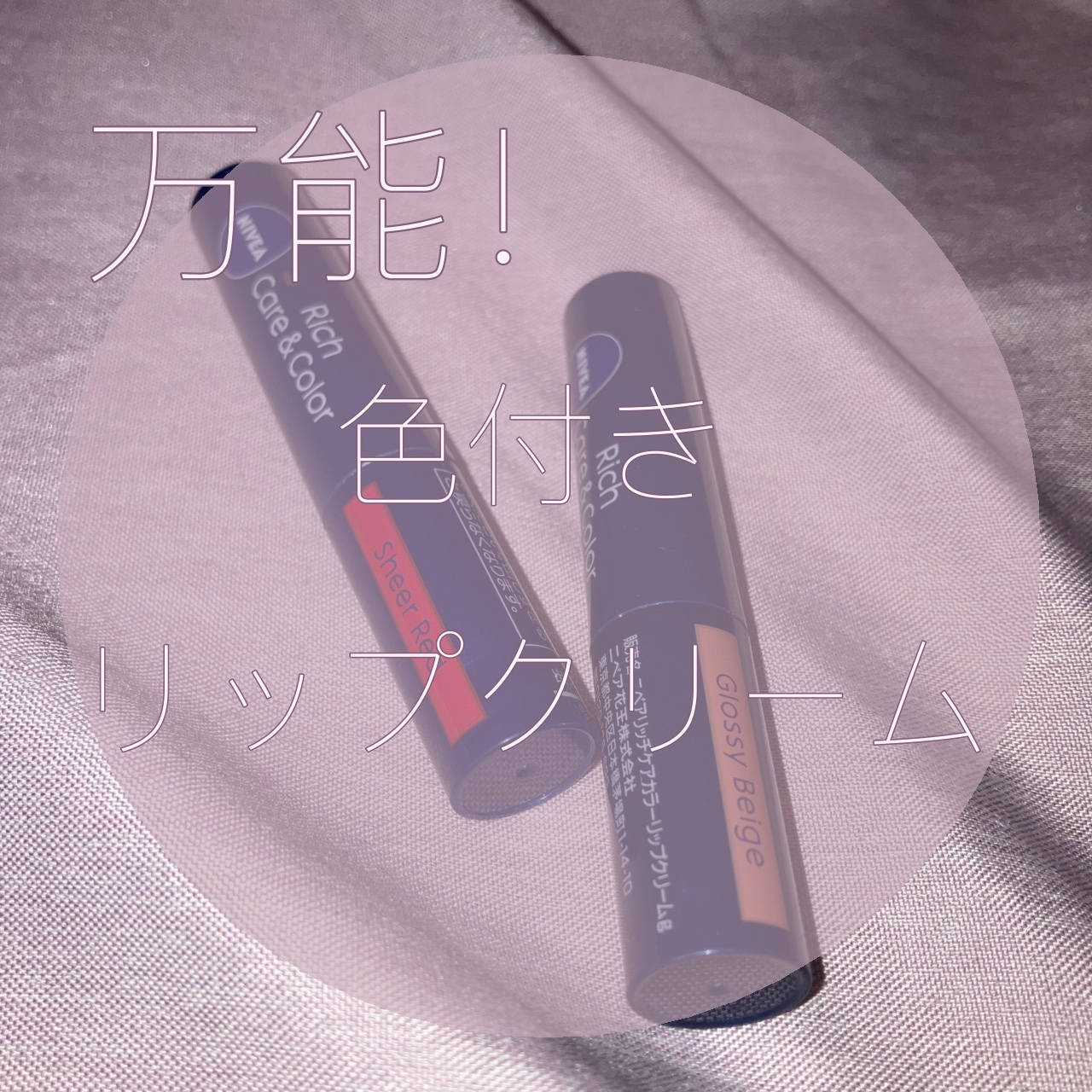 ニベアニベアリッチケア&カラーリップシアーレッド¥847いい感じのむっちり唇でほんのり色付いてこれはいい。#リップクリーム#プチプラ#カラーリップ#色付きリップ#ニベアリップクリーム...