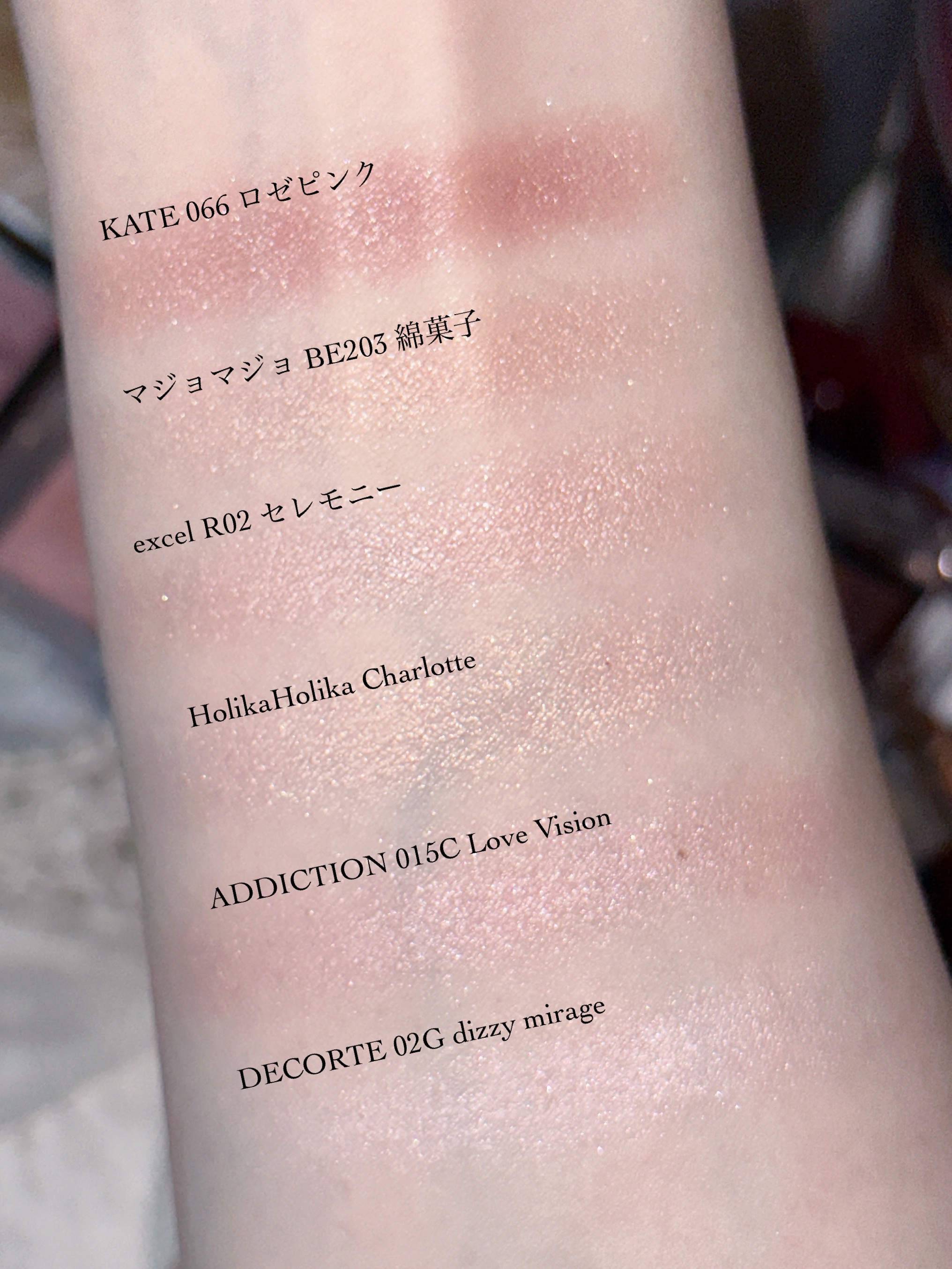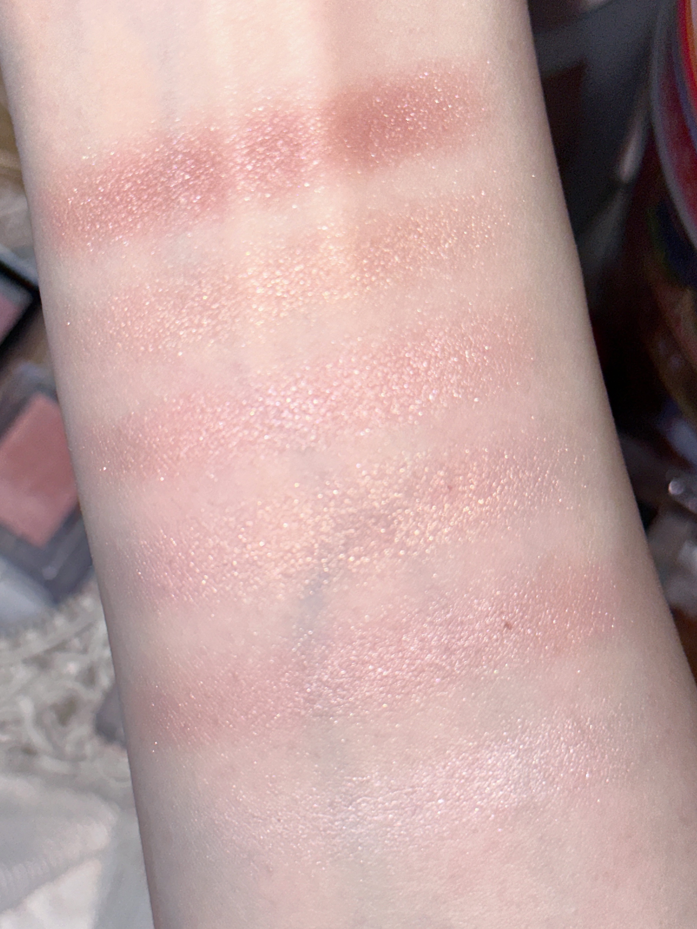 捨て色がなくてイエベの私に使いやすいカラーです! このマットカラーが自然な陰影をつけれて使いやすい!! ピンクベージュにゴールドラメがかわいい。 涙袋に使いやすいカラー✨ 顔がパッと明るくなる✨ こちらは自然な発色とツヤが出てお気に入り♡