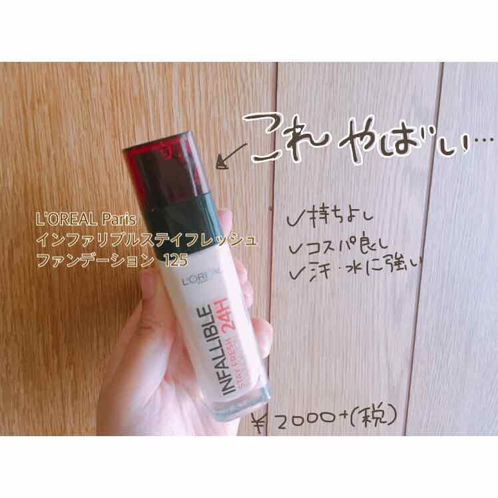 🌹久しぶりの投稿🌹-商品-ロレアルパリインファリブルステイフレッシュファンデーション125-値段-2000円+税プラザかどっかで(あやふや)お試し価格として1500円+税で買えました🤭-感想-画像の通りです、、(感動)金欠小遣いなし受験生なの...