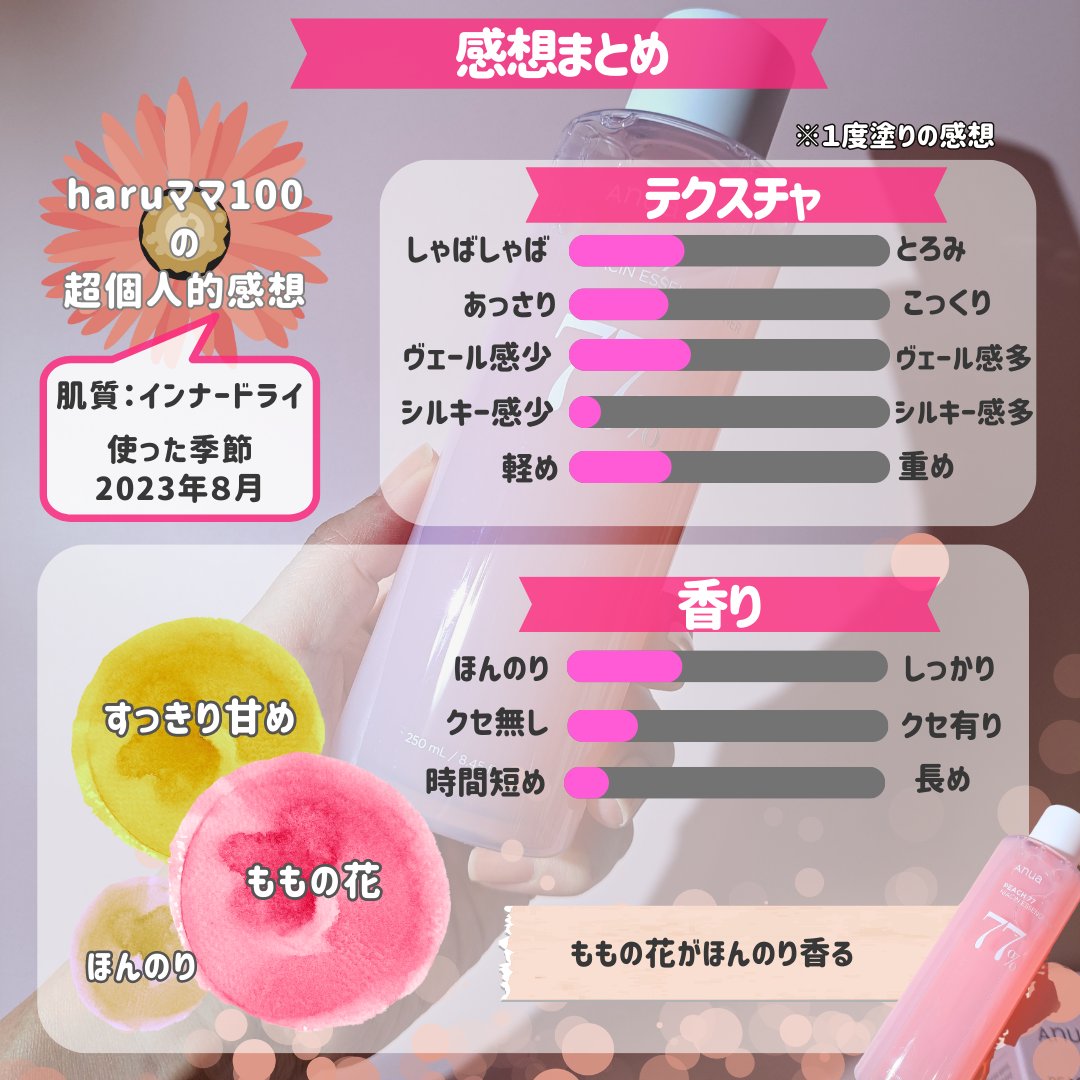 桃77%ナイアシンエッセンストナー250ml🍑人気の桃77%のエッセンストナーがでたよ!🍑ナノサイズの栄養成分がたっぷり!エッセンスinトナーです!✅商品の特徴⚪️栄養たっぷりの発酵桃※77%で満たすなめらかな水光肌日焼けによるシミ予防成分と...