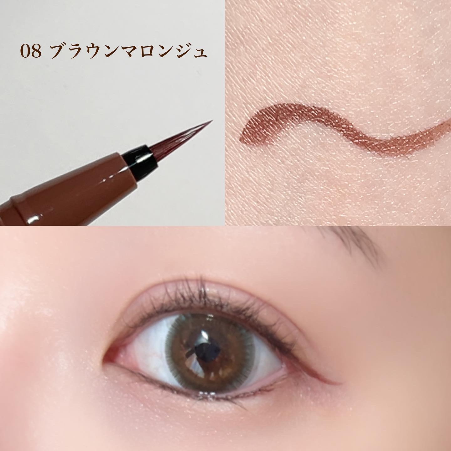 - ※2023年8月頃〜 01・02の容器デザイン印刷色が順次リニューアル。尚、これにかかる商品の返品・交換は承っておりません。 にじみ・くずれに強い速乾タイプの極細リキッドアイライナー 0.1mmのコシのある超極細筆を採用。 細いラインもブレずにきれいに描ける。 水・汗・涙・こすれに強いのに、お湯で簡単オフ! まつげのすき間埋めや目尻のハネ上げラインもお任せ